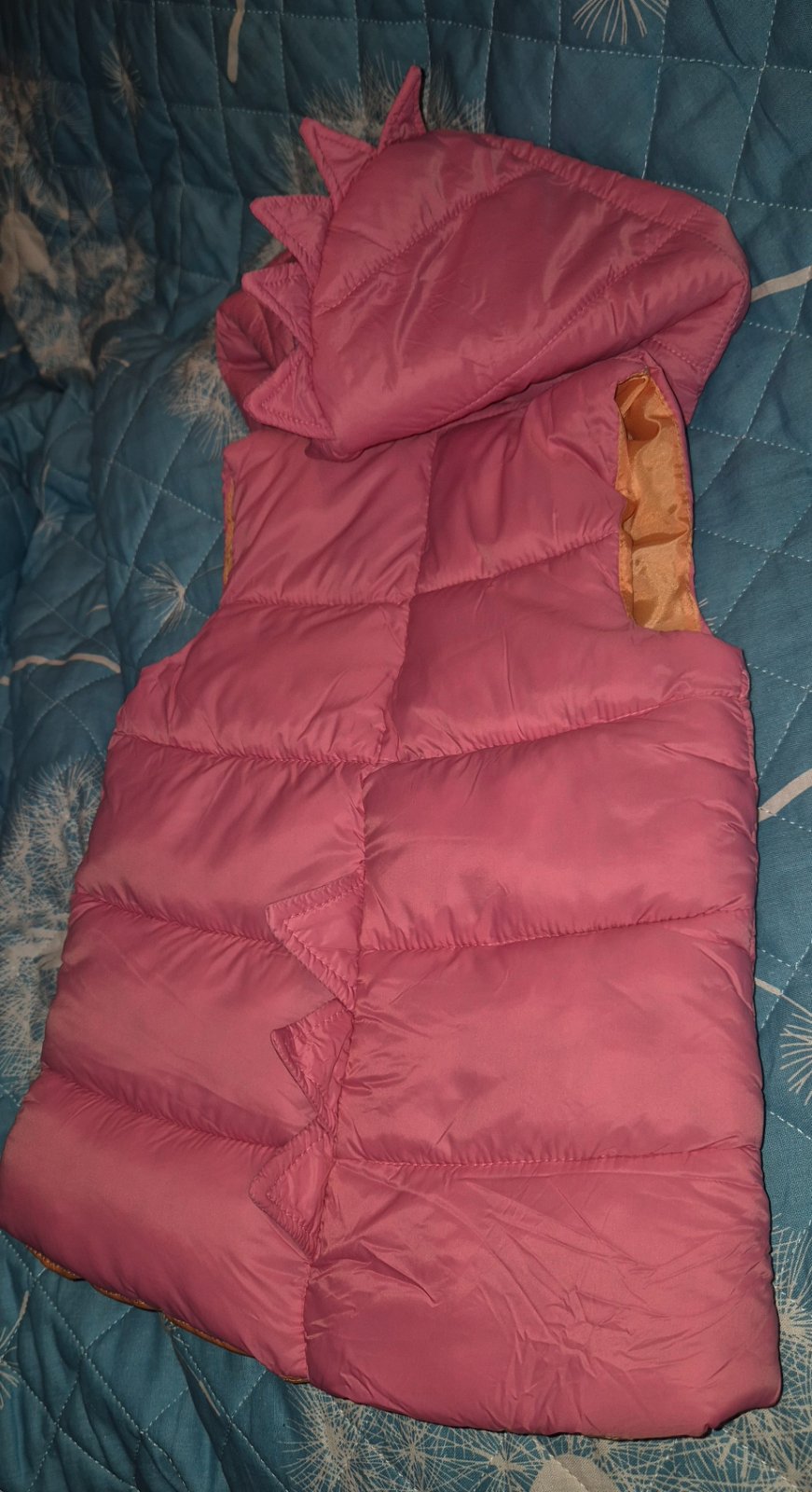 1x oblecena vesticka s myskou Minnie - TOP stav, ozdobne presivanie v tvare mickey po celej vesticke, kapucna je napevno, s malymi ciernymi uskami. Krasna syto oranzova farba, takmer cervena. Vesta...