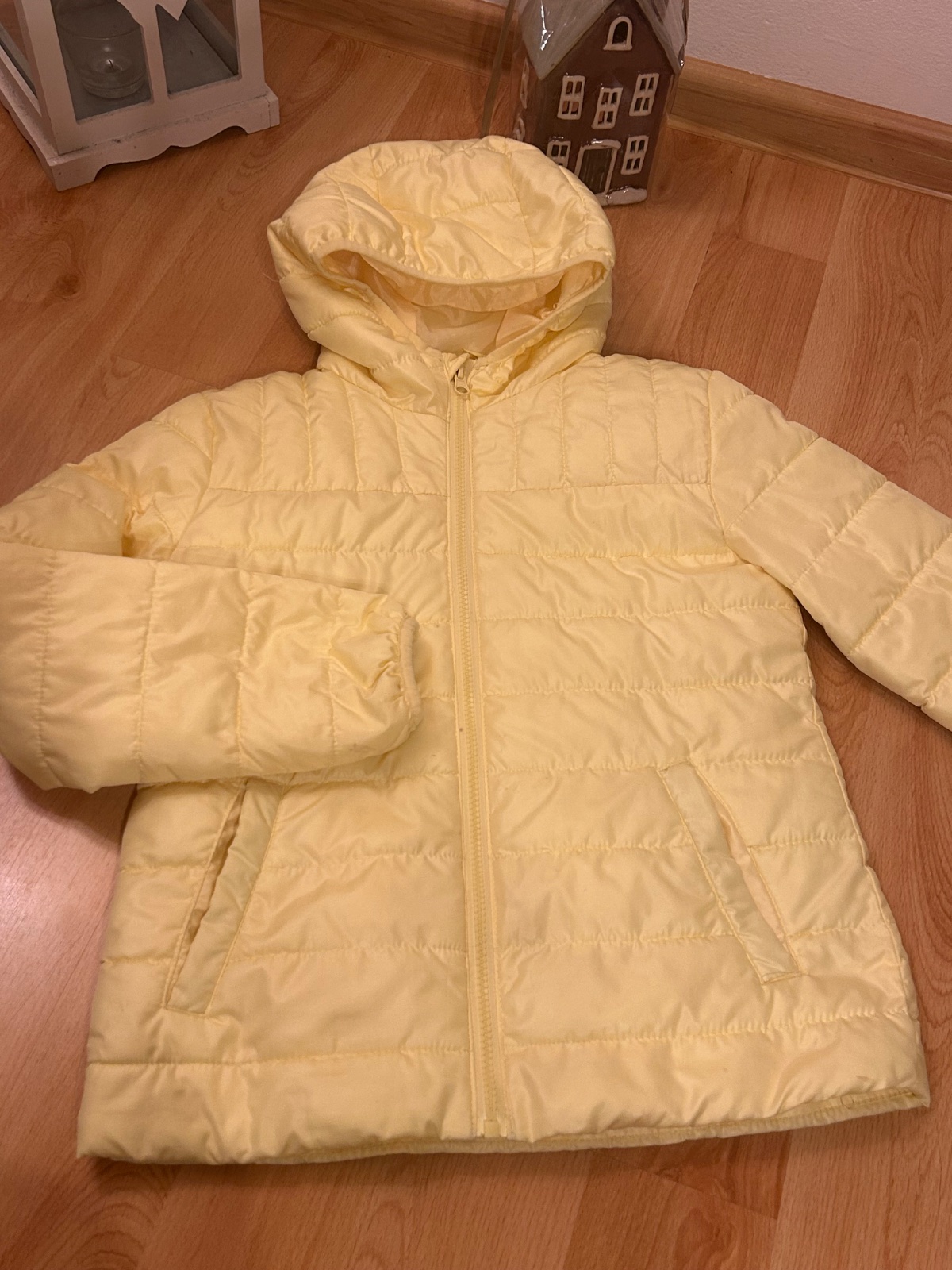 Dievčenská prechodná bunda, veľ.134/140, Y.F.K., kúpená v Kik, mierne zateplená, vnútri podšívka, nosená, bola obľúbená, na spodu rukávov fľaky, ale je stále super-aj do školy, cena 4eurá+poštovné