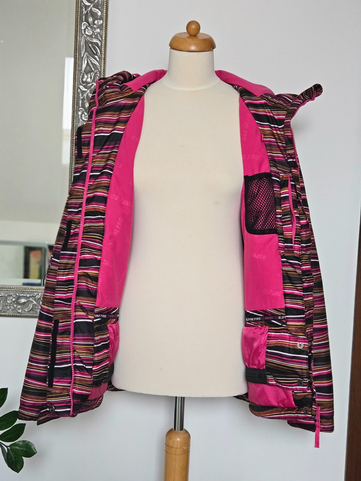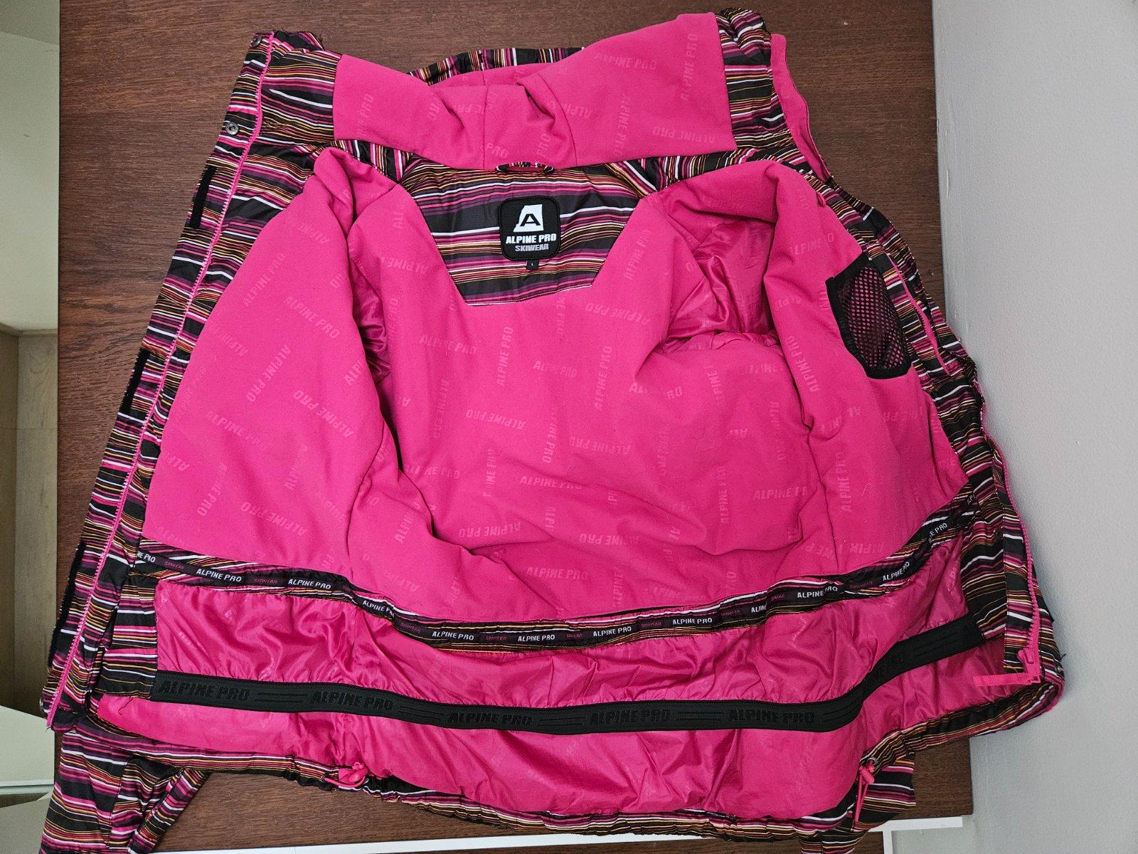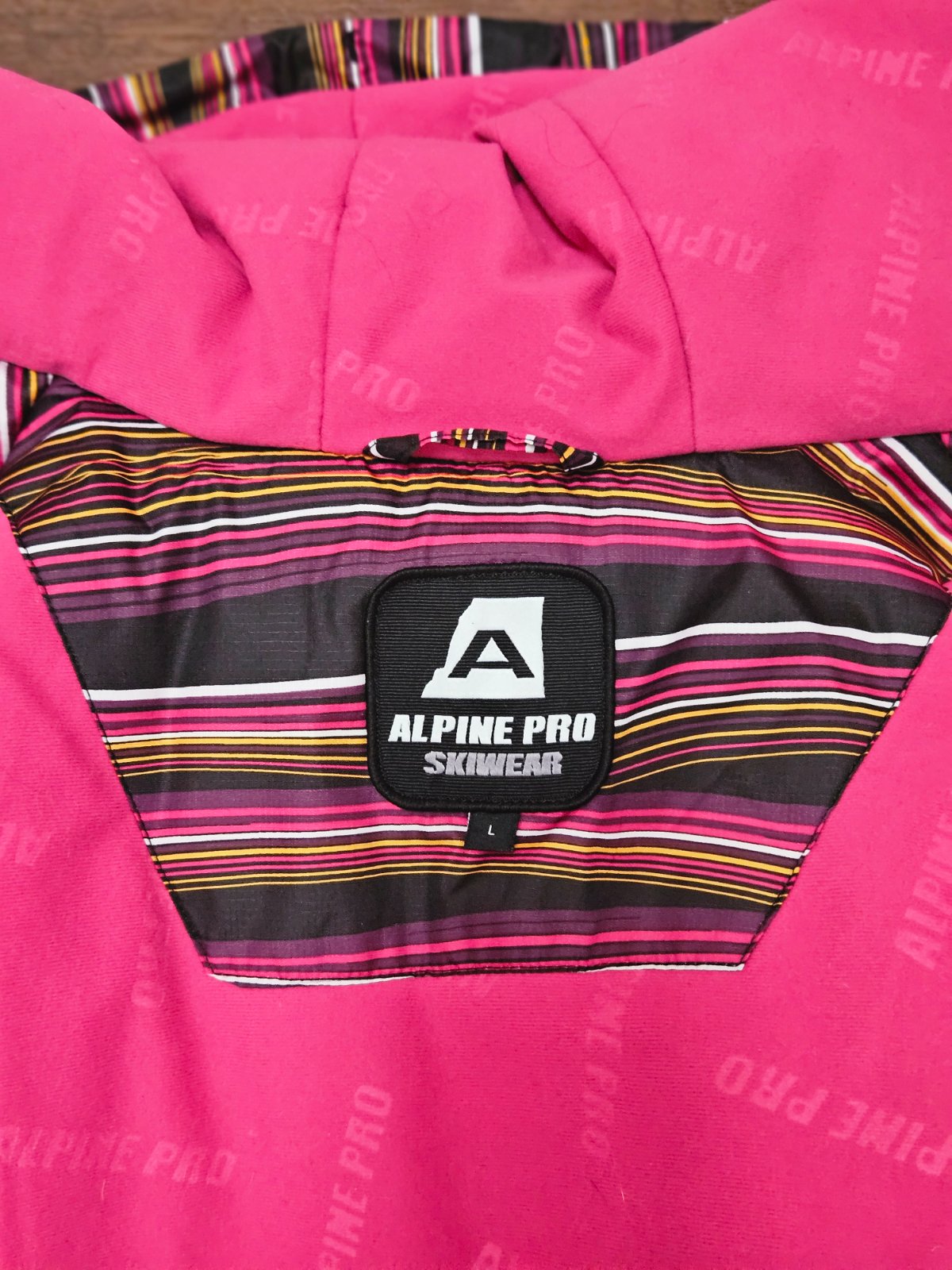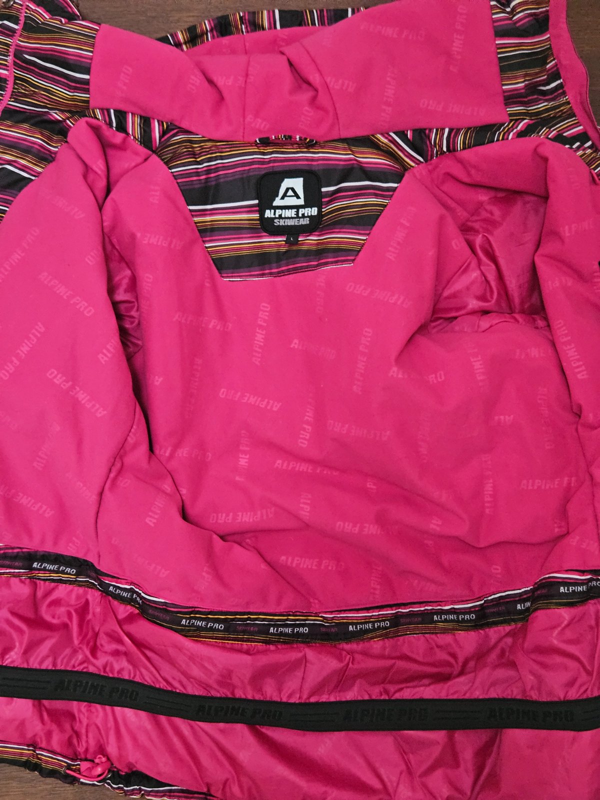 Dámska lyžiarska bunda Alpine Pro vo velkosti L. Vonkajší materiál je vode a vetru odolný a vnútri je ružová fleeceova podšívka. Pár krát oblečená, preto je vo veľmi dobrom stave bez poškodení. Môžem ponúknuť biele lyžiarske nohavice.