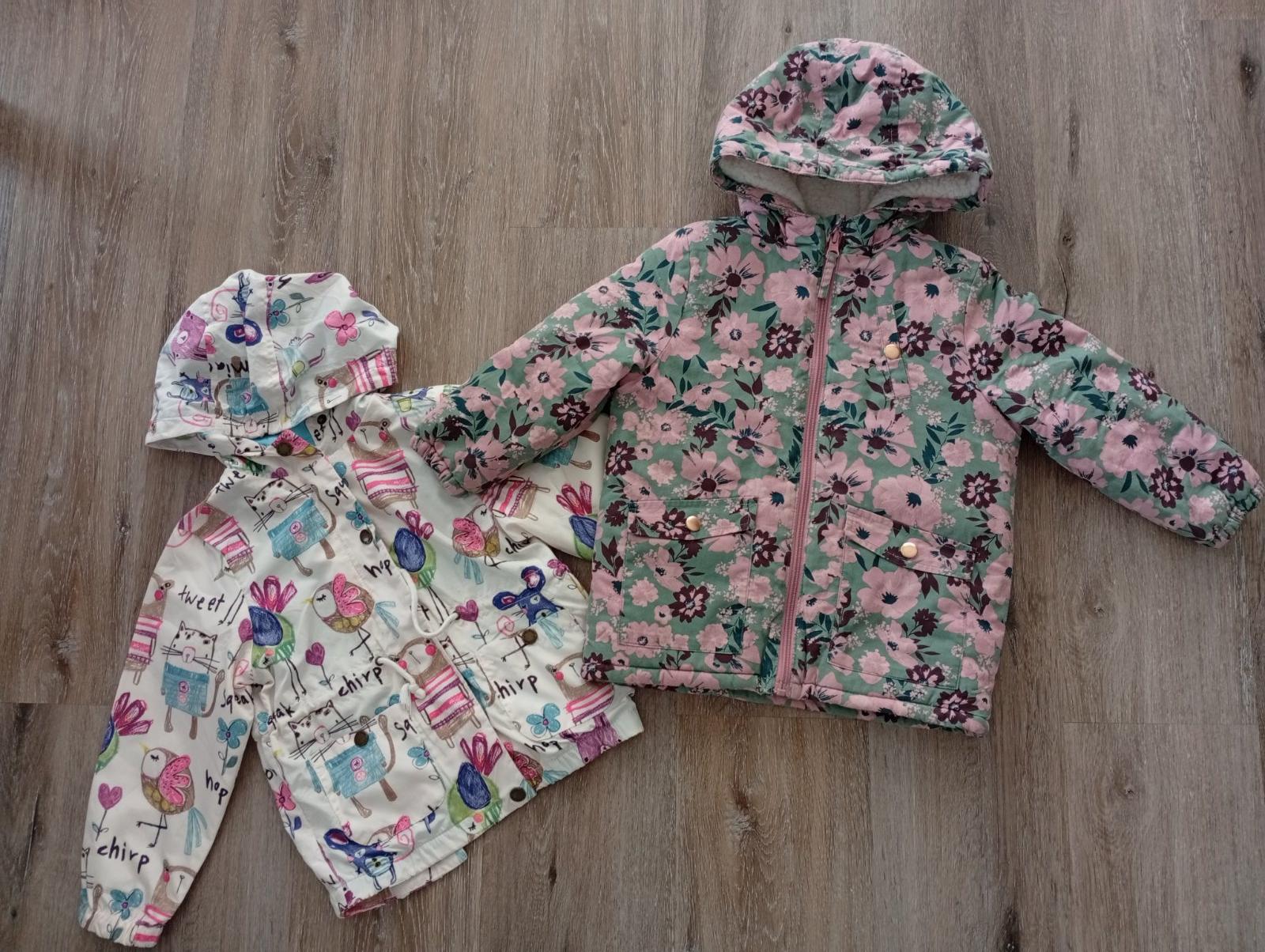 Prechodná bundička je nová bez visačky, veľkosť písaná 4-5 rokov, ale určite menšia, skôr na 3 roky. Zimná bundička nosená minimálne, veľmi teplučká. Jediná chybička je vo vnútri na oteplenej časti okolo zadku je trochu ufúlaná na spodnej časti, čo vôbec by nemalo vadiť a veľmi to ani nevidieť (práčka to nevyprla). Veľkosť 98, ale sadne aj ako 104. Cena je uvedená spolu 13€ plus poštovné. Posielam po prevode na účet