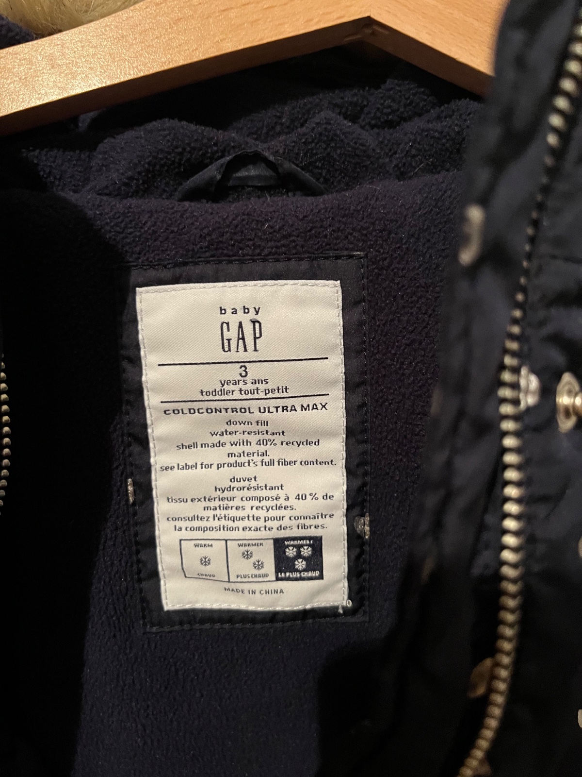 Predám bundu Gap bez poškodení. Veľkosť 2-3 roky.. Cena 11eur plus poštovné 79-57