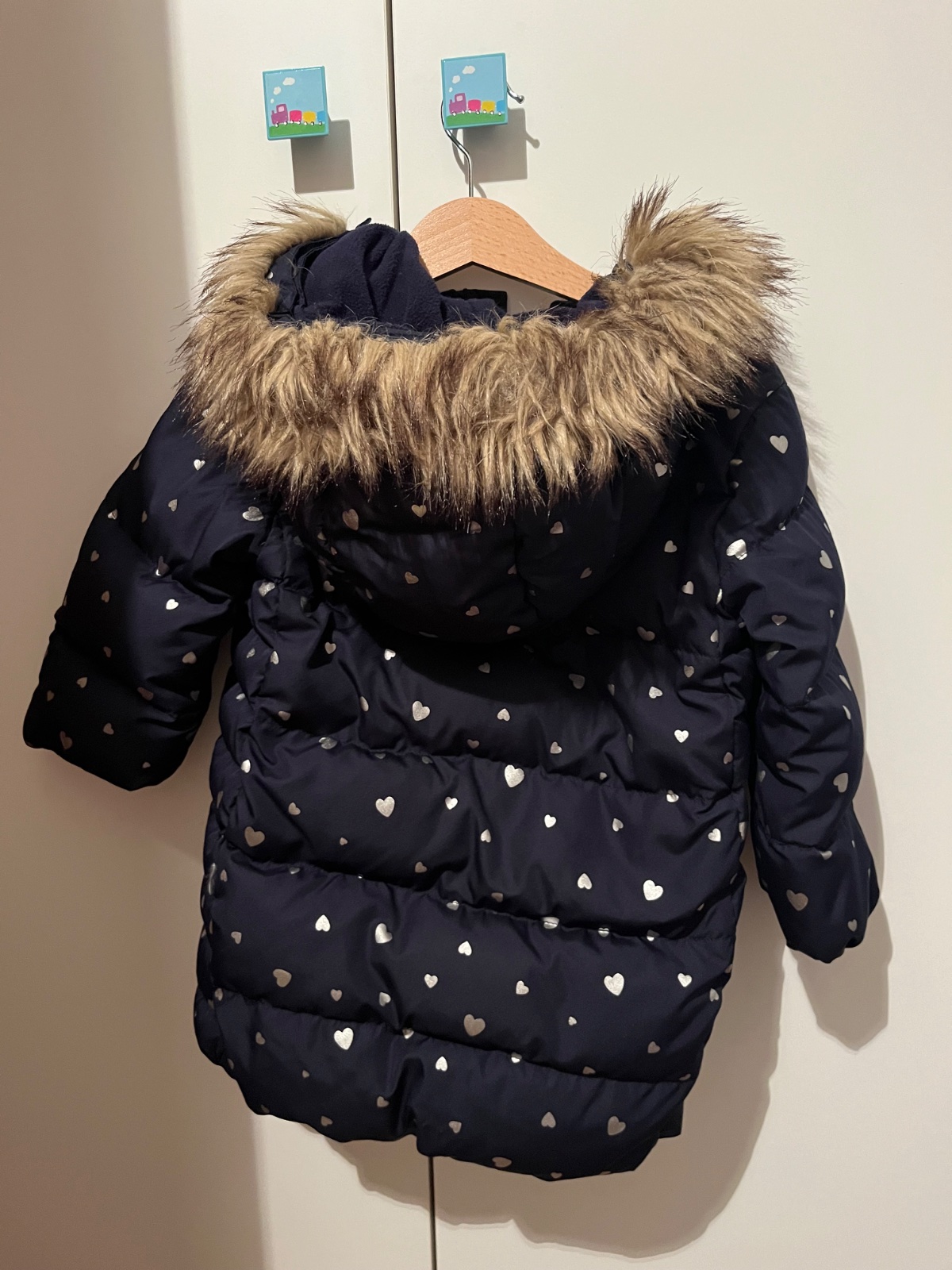 Krásna a teplucka zimná bunda minnie mouse GAP. Vnútro ovčie rúno. Na spodku zvnútra dolu trochu zafarbené, čo však pri nosení nevidno (vid posledná foto). Inak bundicka bez poškodenia. Miery na f...