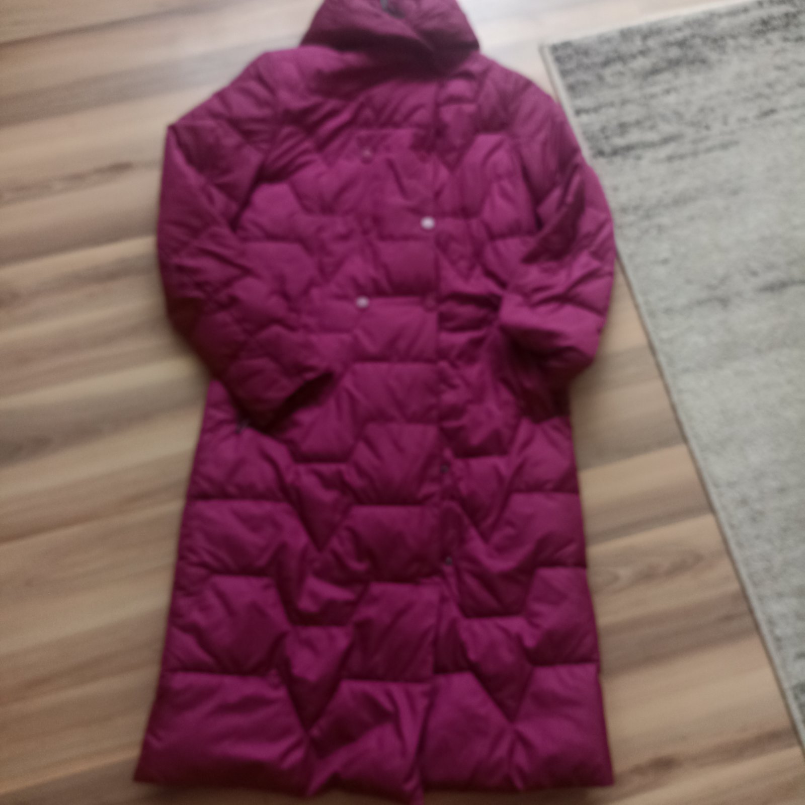 Krásna bunda vhodná na prechodné obdobie, ľahučká a zároveň teplučká vďaka výplni z peria. Zapínanie na zips+ utiahnite si pás stuhou. Mne je malá. Veľ. XS, kľudne aj S. Drahá značka.
