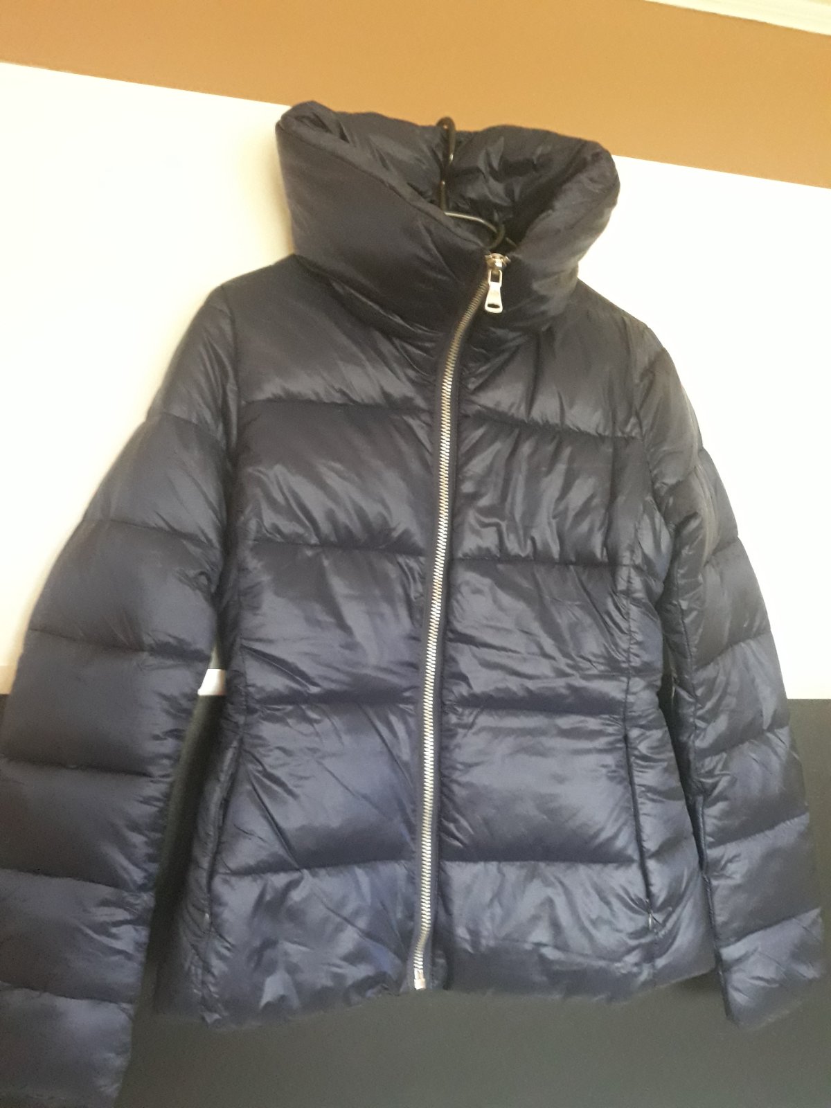 Predám novú dámsku zimnú tmavomodrú bundu s krásnym golierom..veľkosť S..prsia 45,5cm..dĺžka 63cm..cena 15e + poštovné