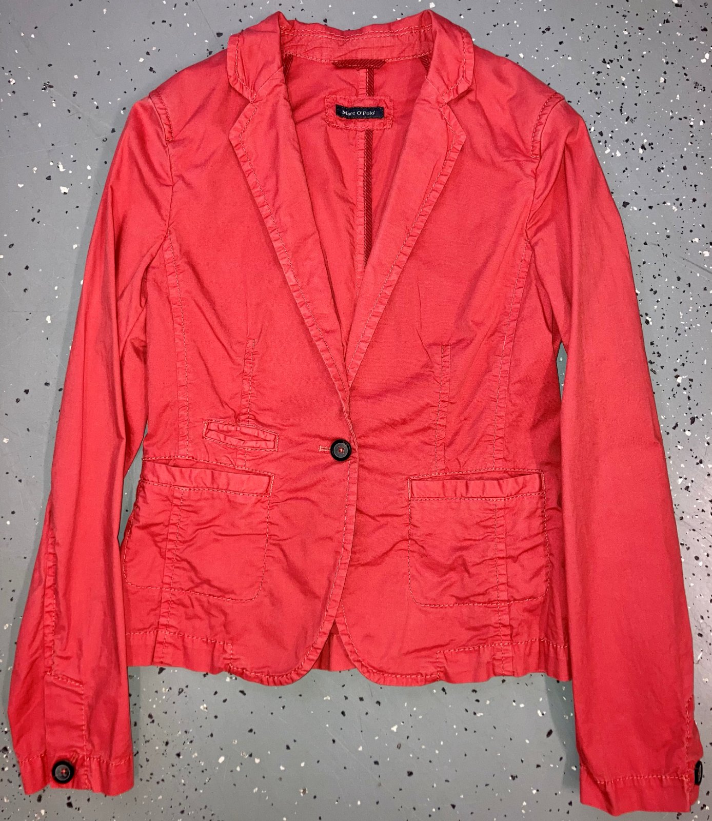 Predám kvalitné nepodšité dámske sako, značka Marc O´Polo, veľkosť 36, farba korálová, ideálne do jarno-letného exteriéru alebo celoročne do interiéru, sako bolo veľmi málo nosené, cena 3.99 Eur bez poštovného (poštovné podľa aktuálneho cenníka Slovenskej pošty), zasielam ihneď po zaplatení, nezasielam na vyskúšanie.
