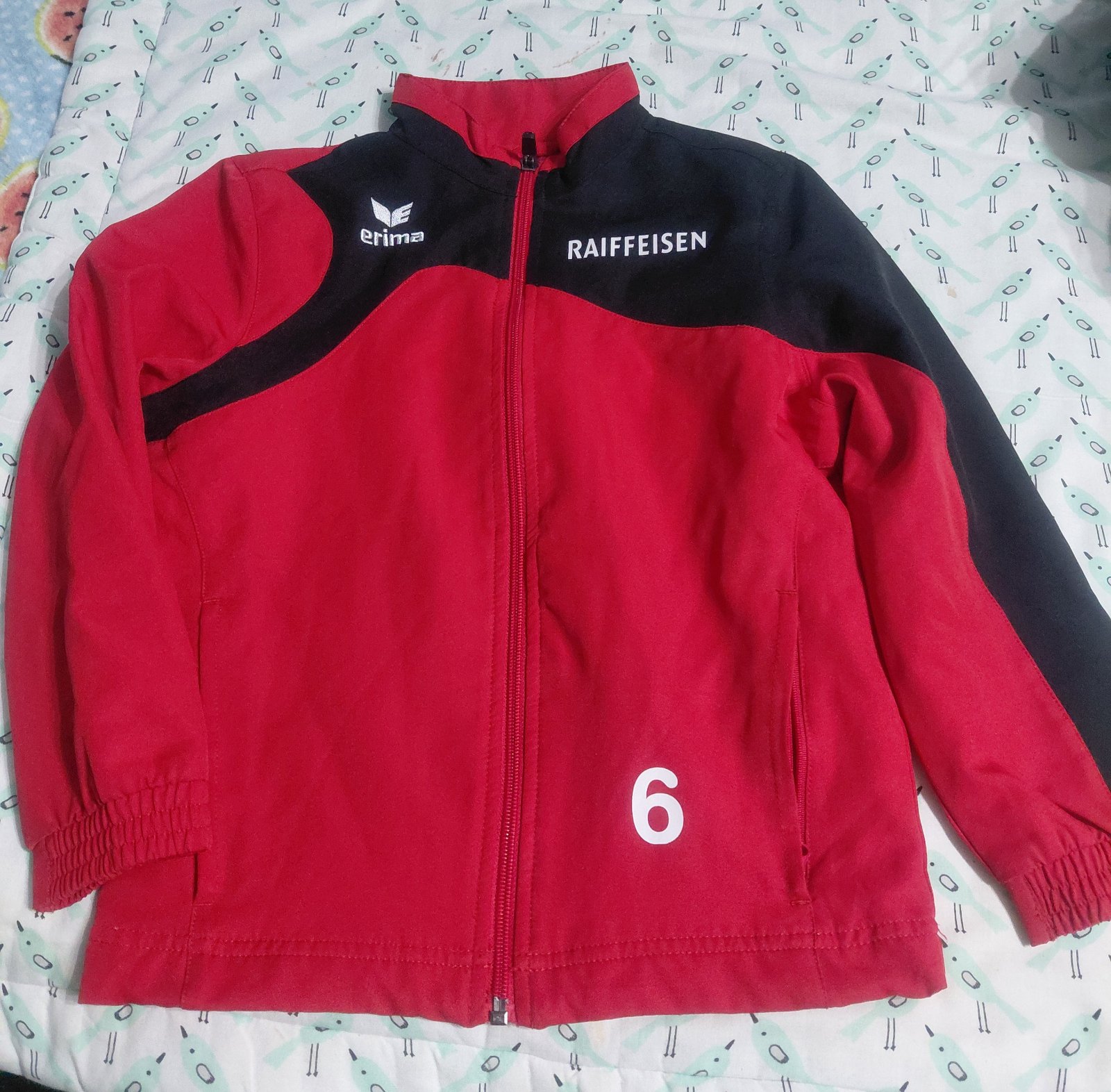 Bundička prechodná zakúpená priamo na štadióne Manchester united s logom tímu hráčov. Bez poškodenia velkost cca až 128 je značena ako xs značena na vek 6 až 7 rokov. Bunda je nepremokavá, pri dažd...