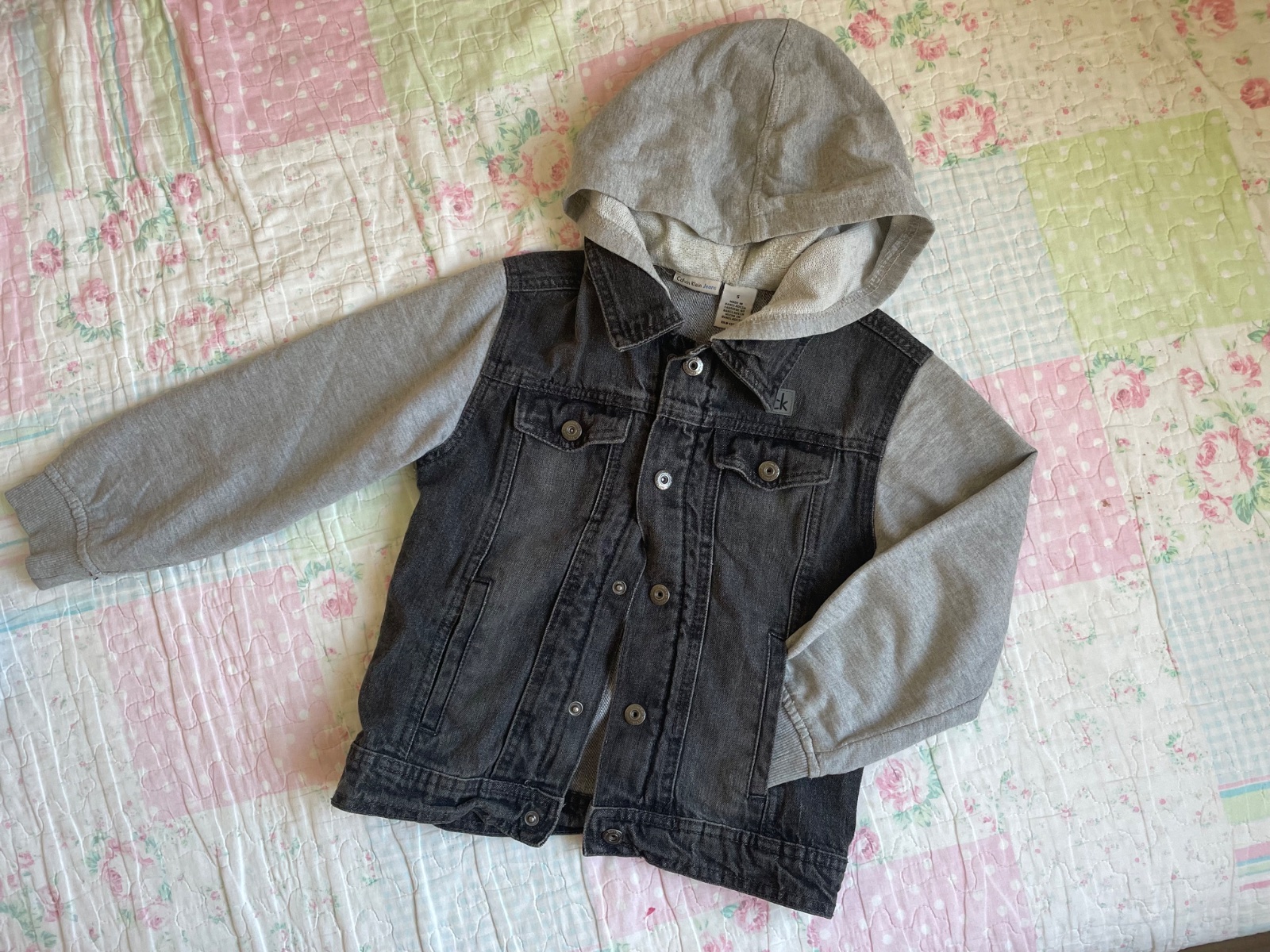Vypeckovaná Kombinovaná (riflovina+teplakovina) budnička,z kvalitných mäkkých materiálov,ľahká, zapínanie na zaskakovacie cvokové gombíky.S kapucňou.Dobre sa nosí aj pre toho,kto sa rýchle zašpiní.💪💫Veľmi praktická a frajerska,syn ju mal ešte ako takmer 7 ročný. Stav je TOP,ako nová.Na fotke sa zobrazujú farby do šedá,v skutočnosti je riflová časť čierna.👦🏼🌟Cena+posta