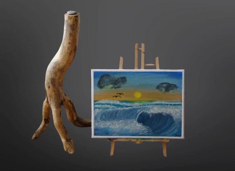 Ručne maľovaný obraz Morská vlna, západ slnka