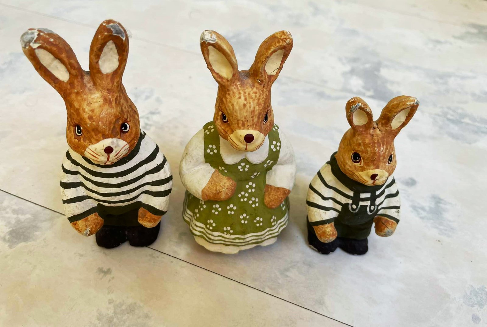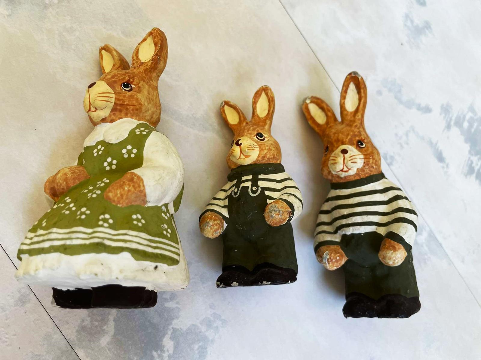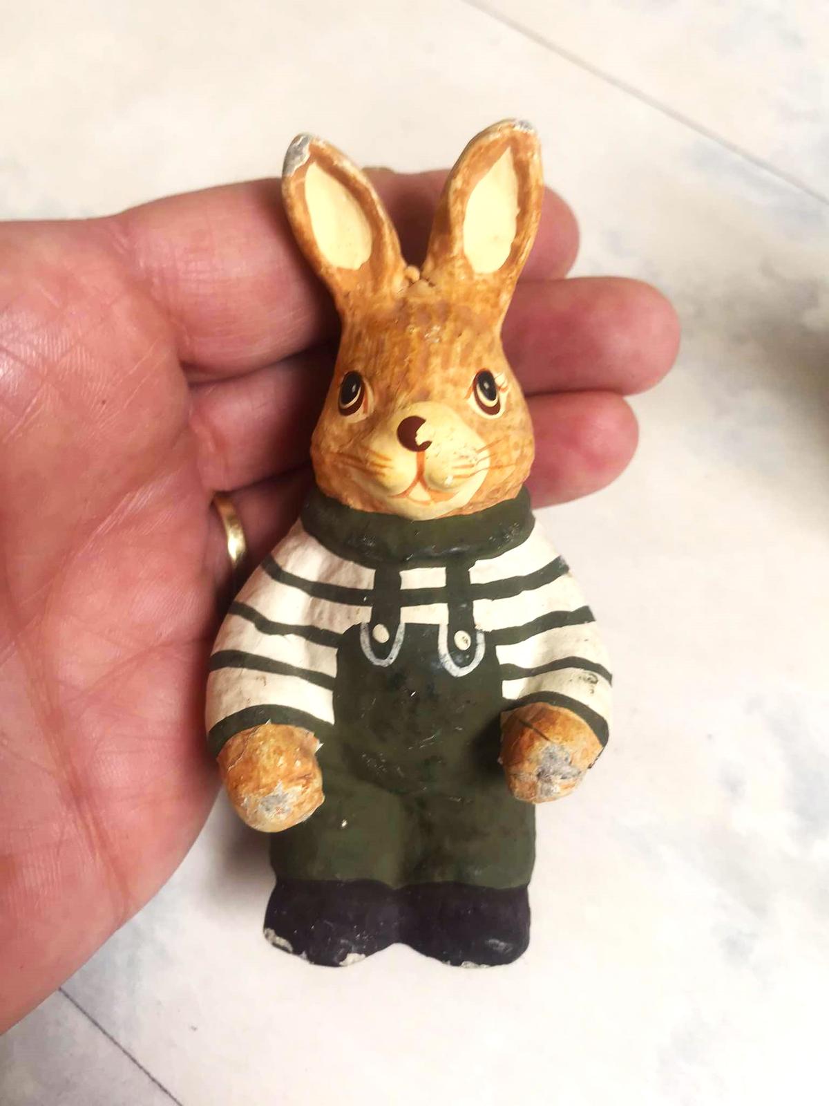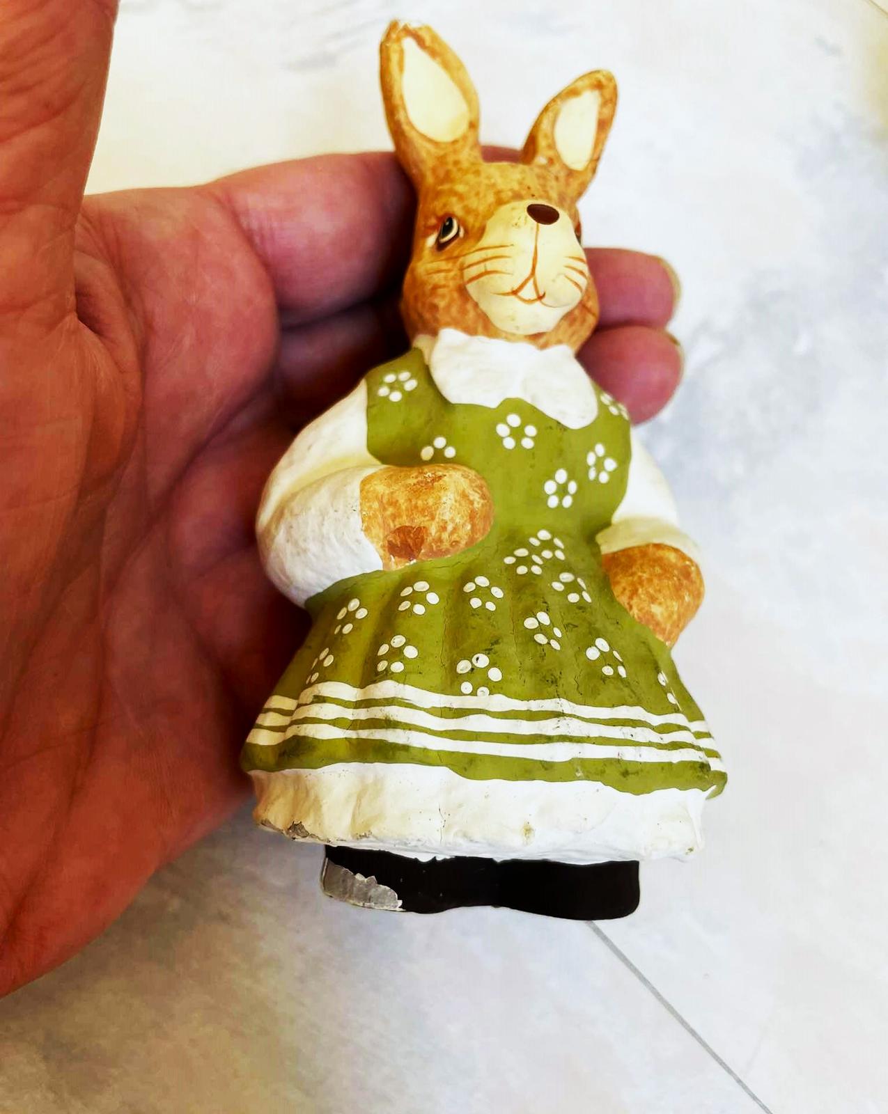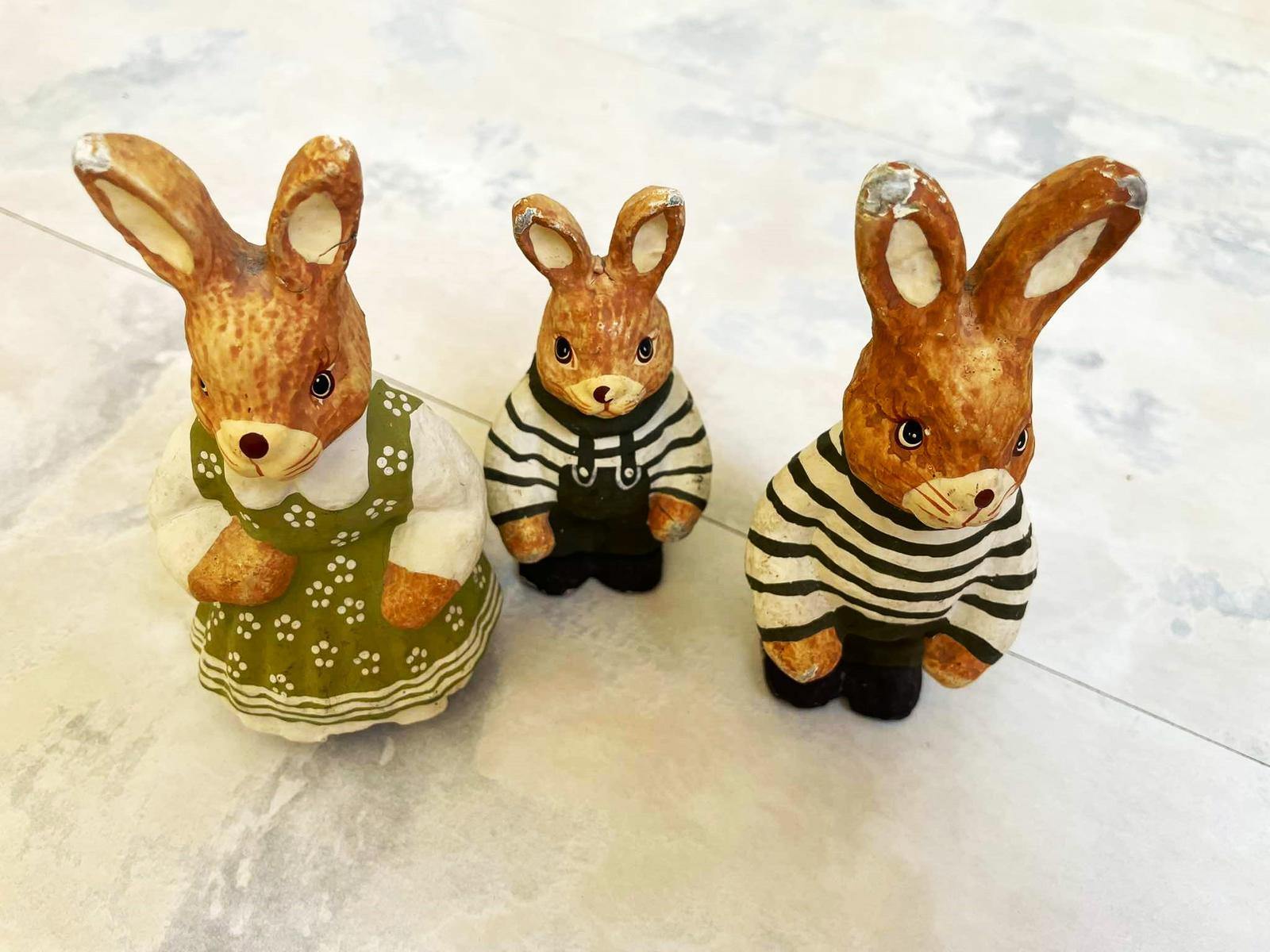 vintage figúrky - jemne poznačené časom,poškodenia vyfotené - výška = 12 cm, najmenší 10 cm,sú dosť ľahúčke,nie je to porcelán, ani keramika,vhodné ako dekorácia na Veľkú noc