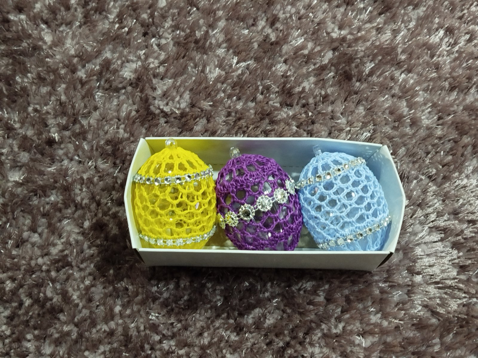 Háčkované na plastovom vajíčku. Uháčkované zo 100 % bavlnenej priadze. Cena je uvedená za 3 kusov.