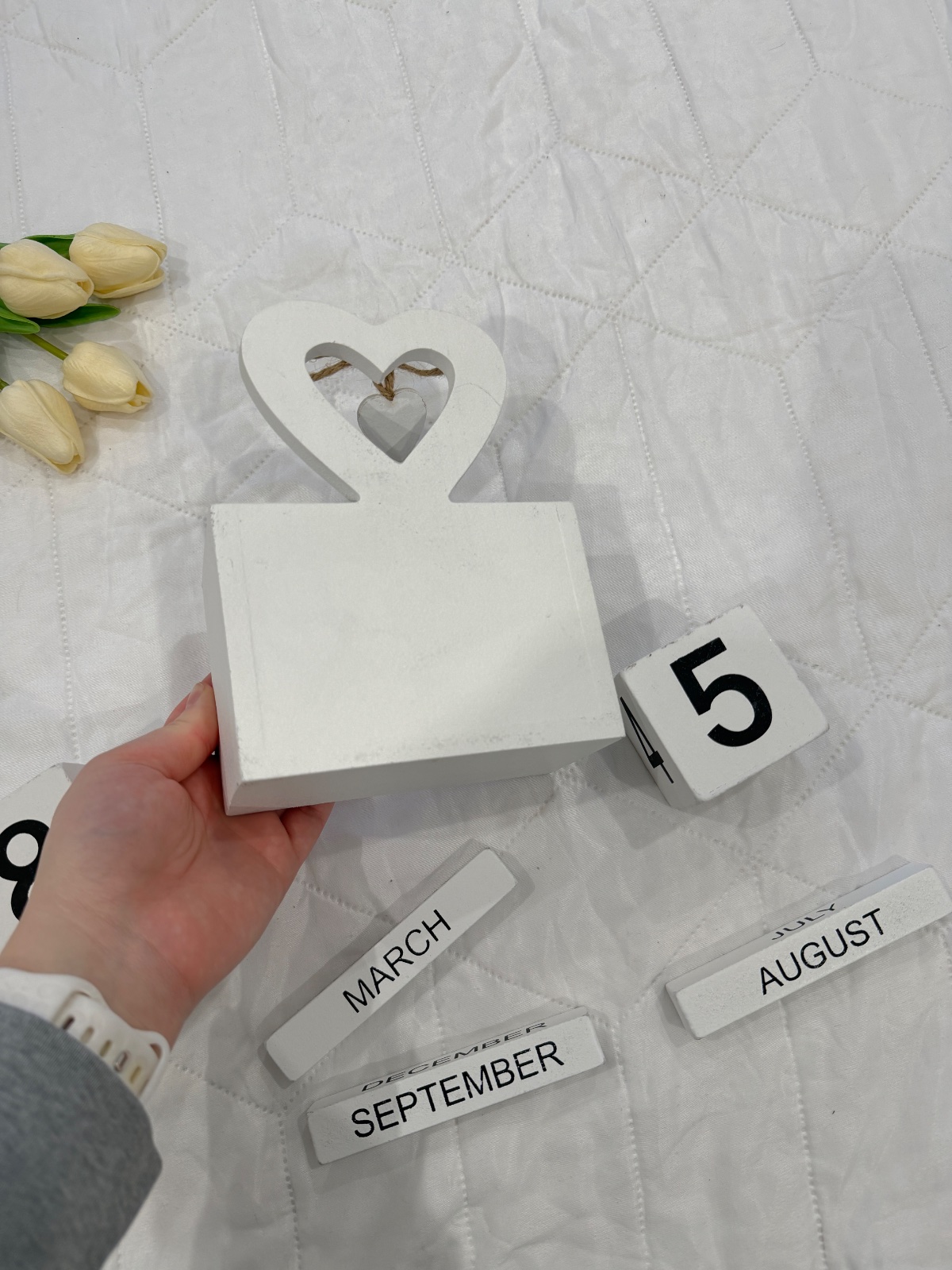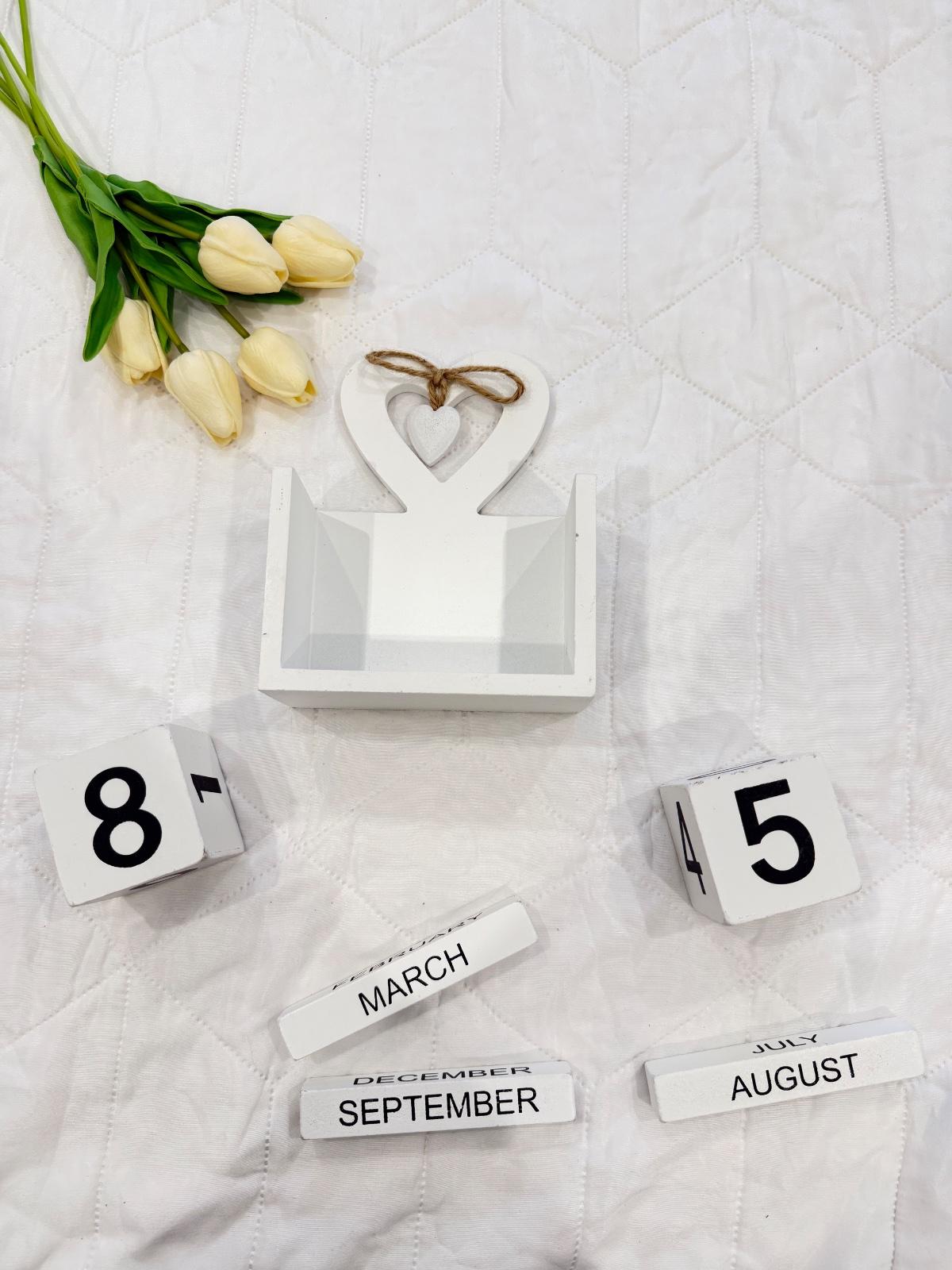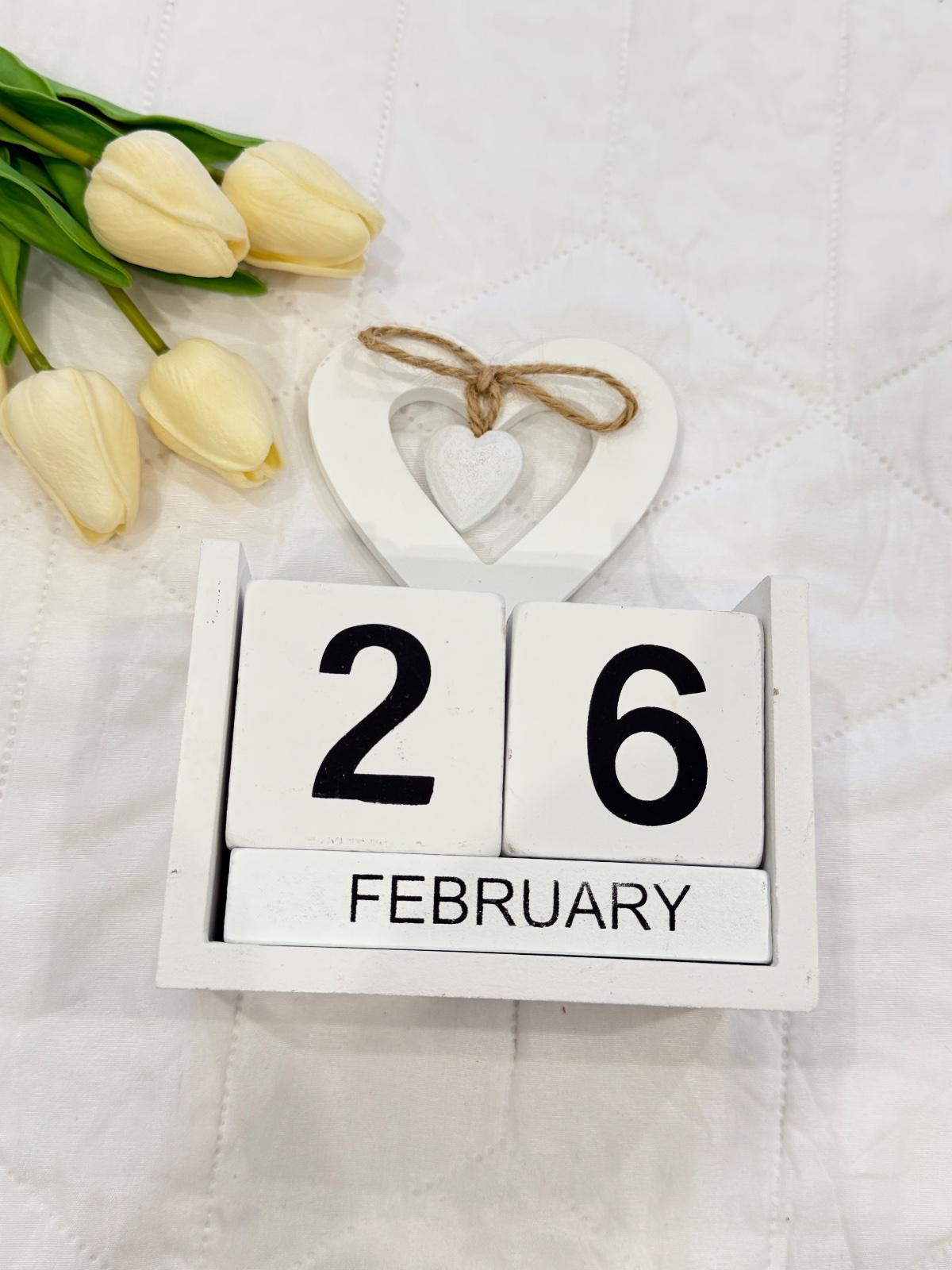Drevený večný kalendár s romantickým srdcom