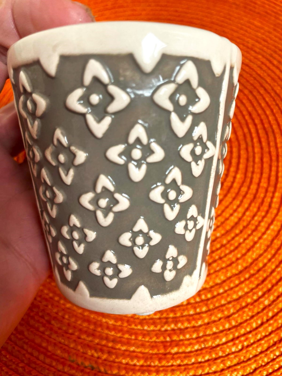 zaujímavý, s plastickou kresbou,priemer = 7 cm, výška = 7,5 cm