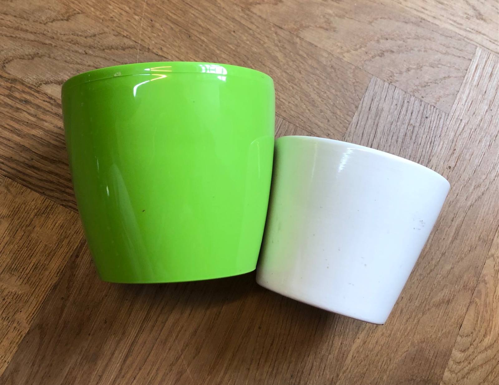 - zelený plastový s vnútorným priehľadným kvetináčom