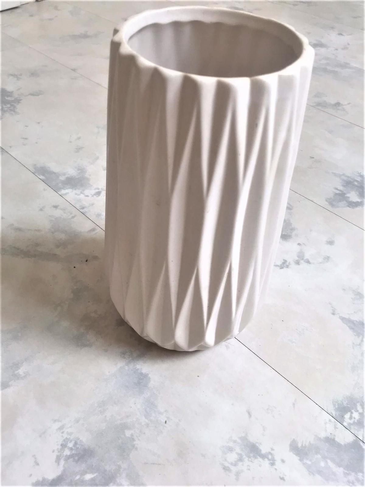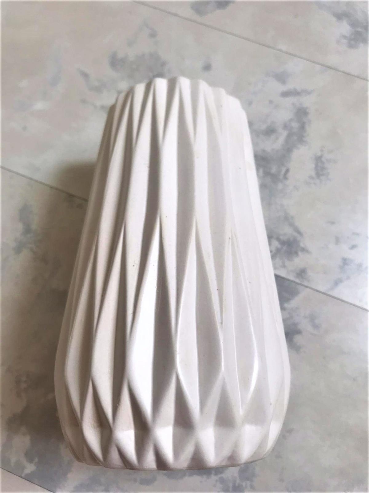 biela plastická zaujímavá váza,min. užívaná,výška = 22 cm, priemer horného otvoru = 9 cm,smerom dole sa jemne rozširuje