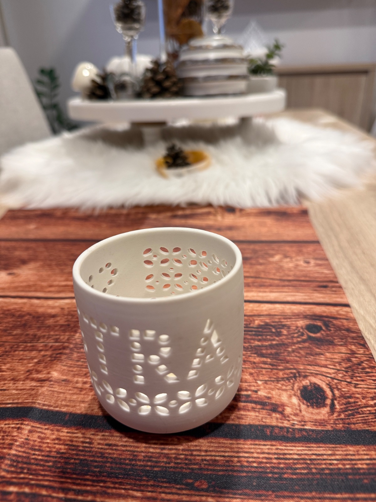 Keramický svietnik s nápisom sestra
