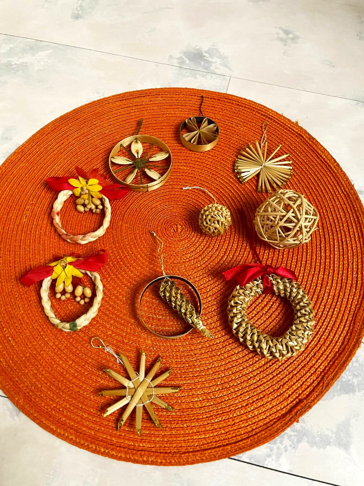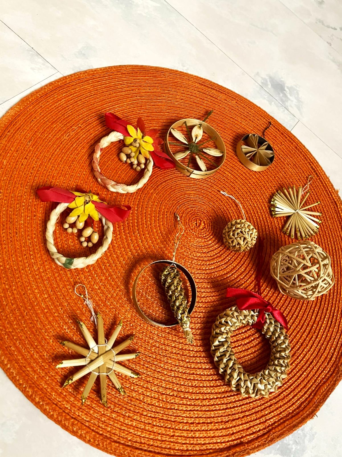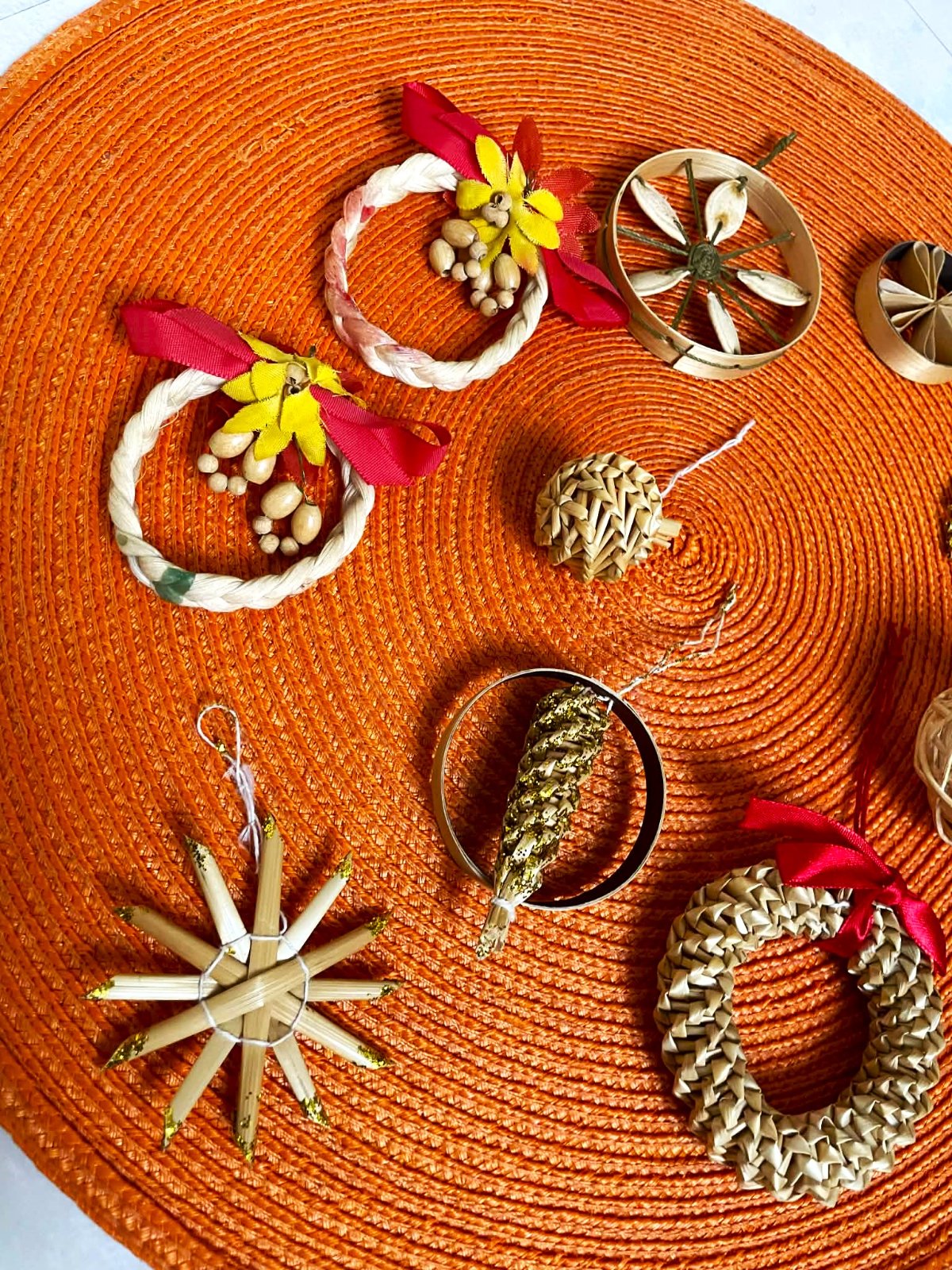 ľahké slamené večne aktuálne naturálne ozdoby,ručne robené,priemer cca 6 - 8 cm
