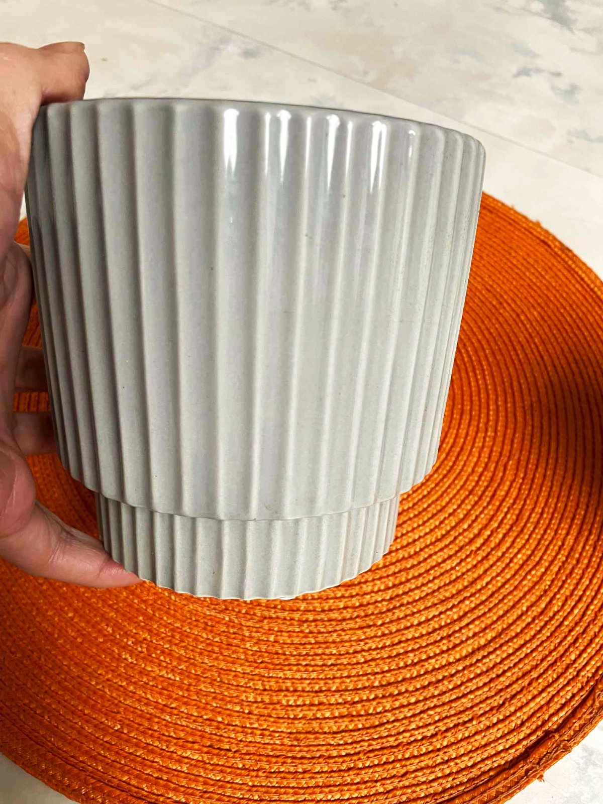min.užívaný,krásny vzor,dole jemne odchlípnutá glazúra,nie je to skoro vôbec vidno,na spodku silikónové mal= kolieska na ochranu nábytku,výška 13 cm,priemer 13 cm