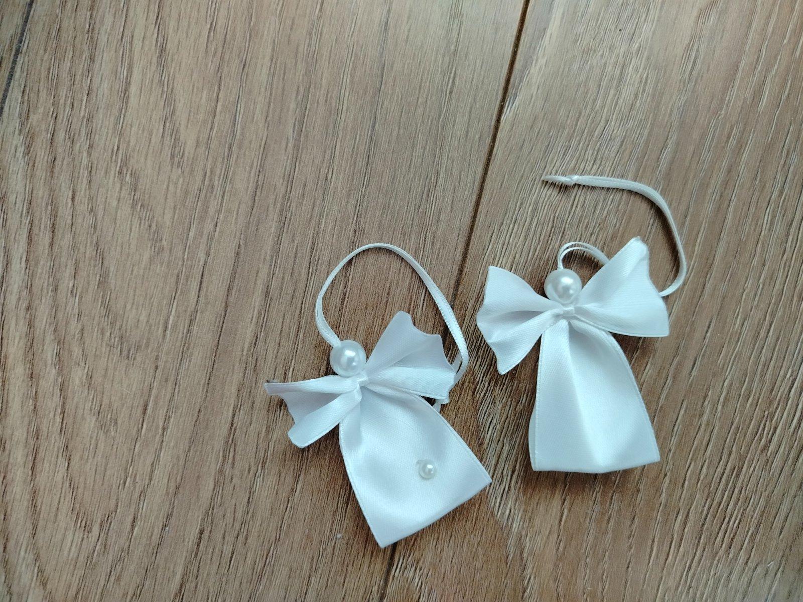 Predám vianočné ozdoby na stromček - anjelici vyrobené sú zo satenovej stužky, dĺžka 6cm, šnúrky na zavesenie