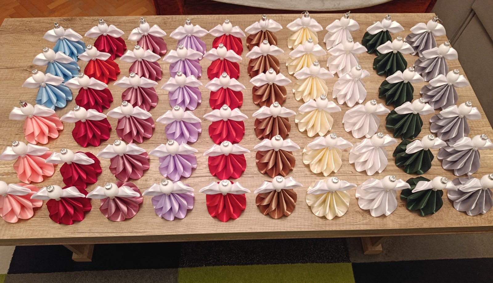 Vianočné ozdoby,anjely,kvietky zo stuhy