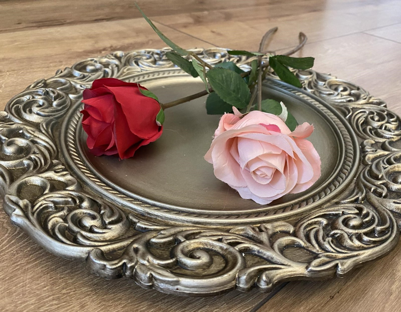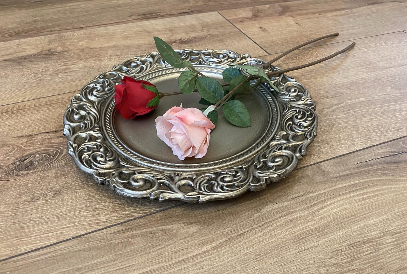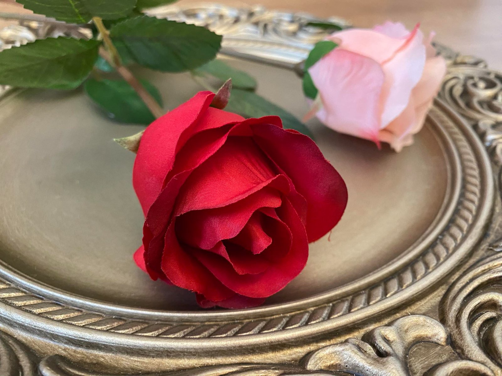 umelé ruže - červená a ružová, výška - 52 cm. Cena je za 2 kusy, predaj len spolu.