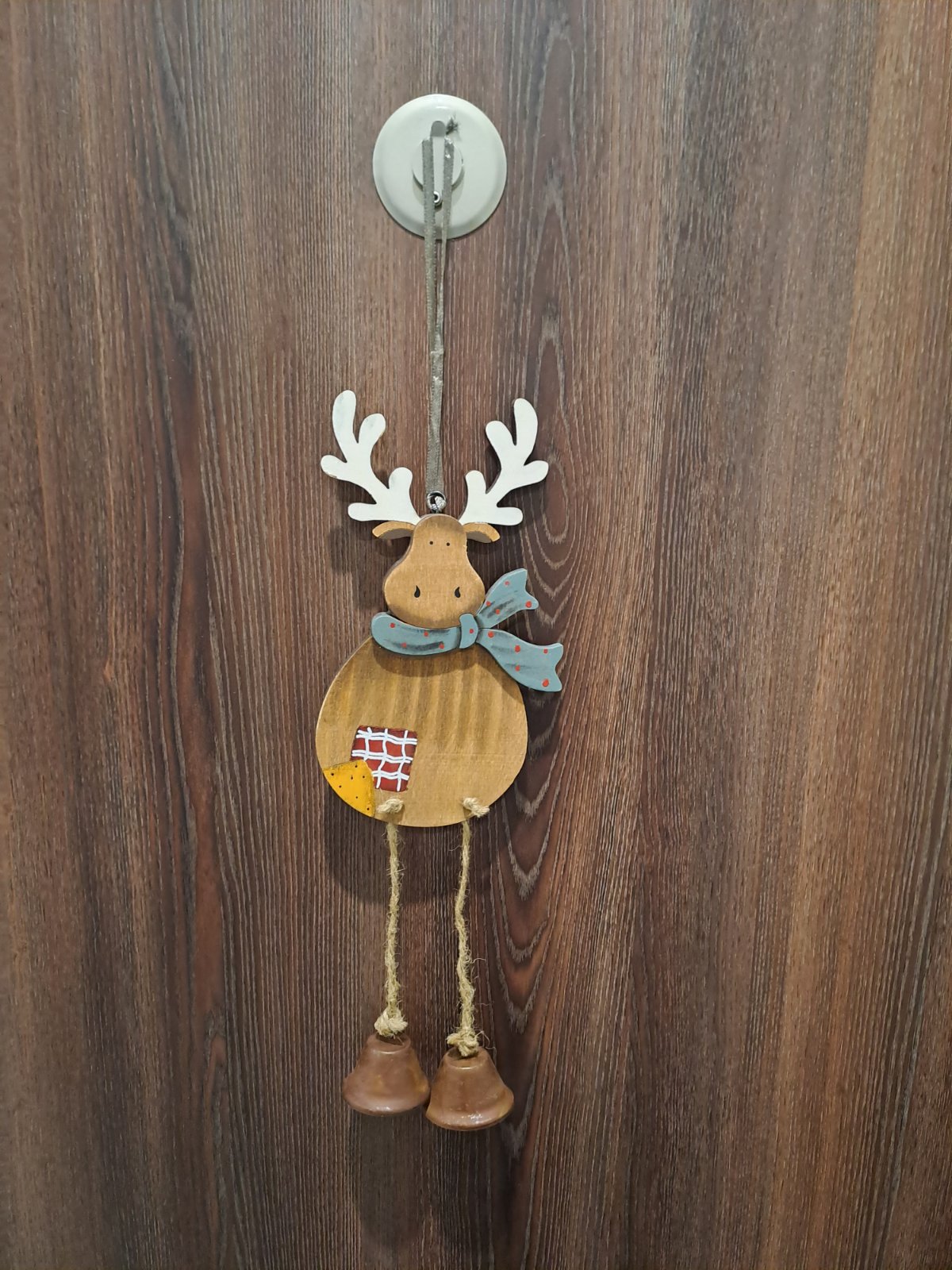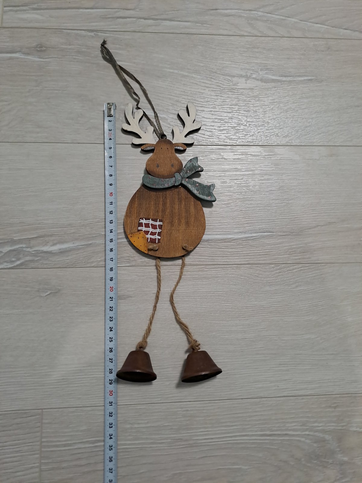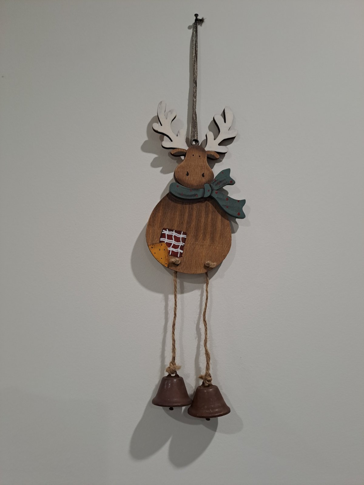 Krásny vianočný sobík na zavesenie na stromček alebo na dvere. Materiál: drevo. Viď rozmery.