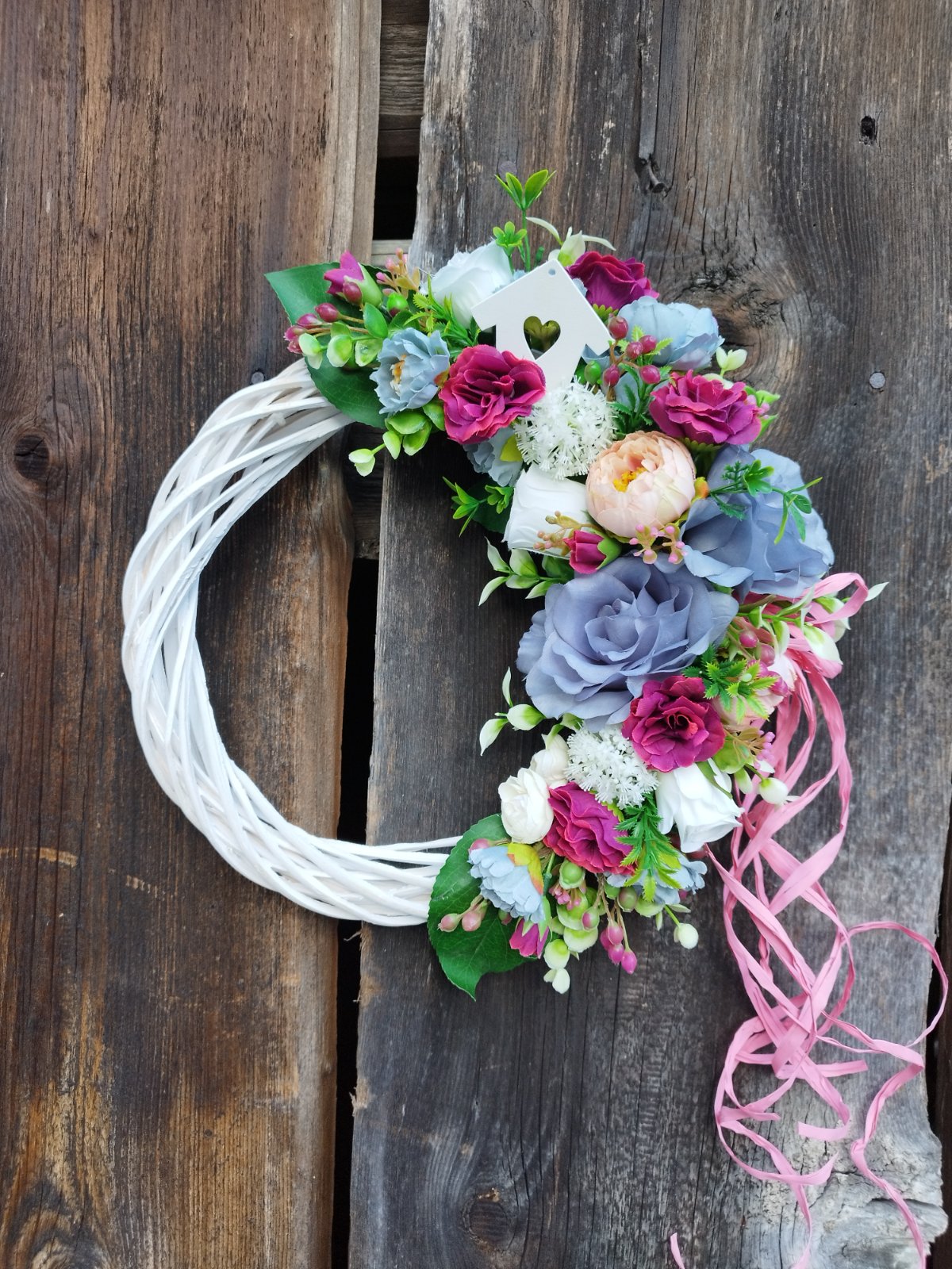 Bordó-biely veniec jarný/celoročný priemer: 30-35cm.