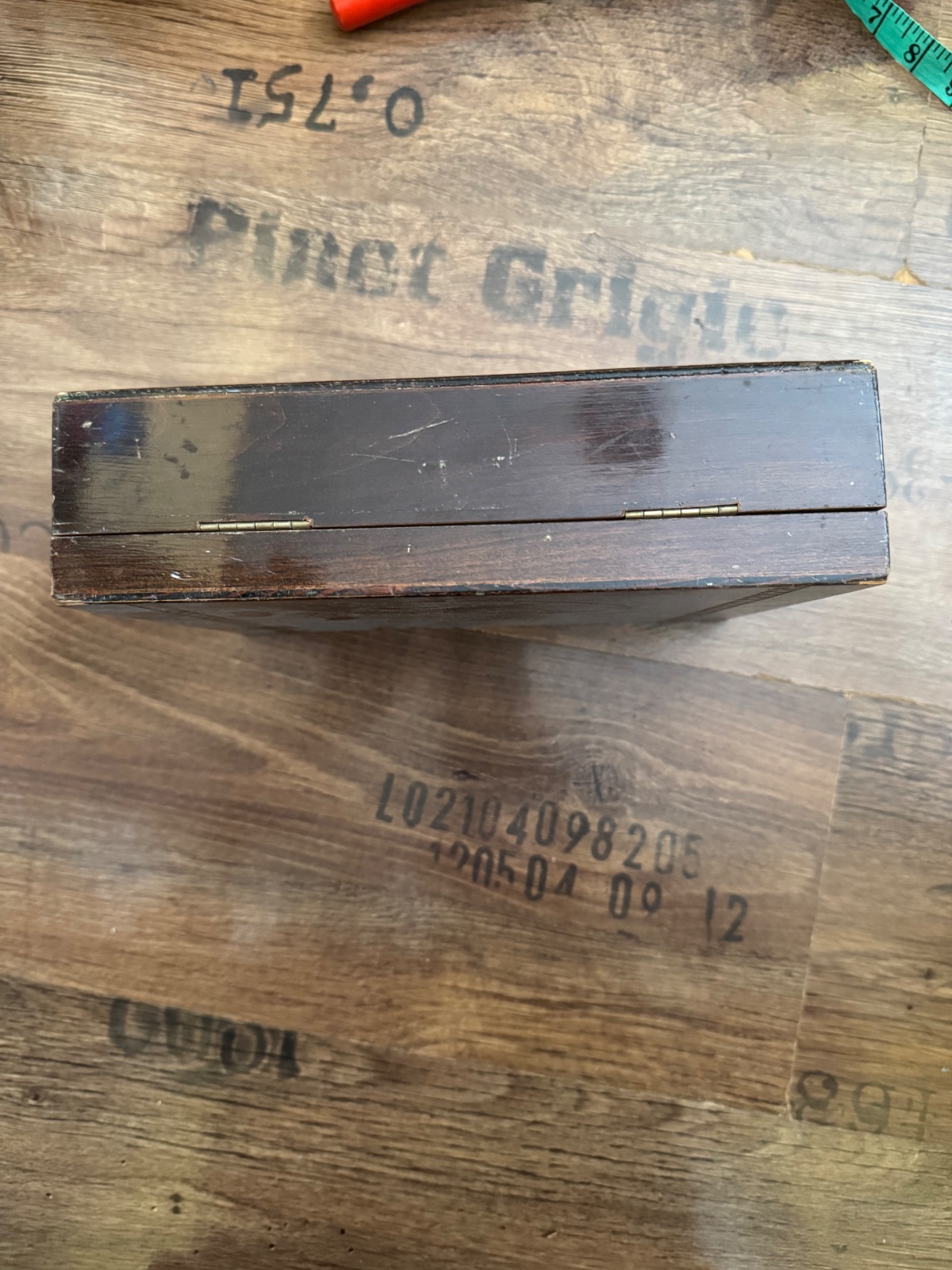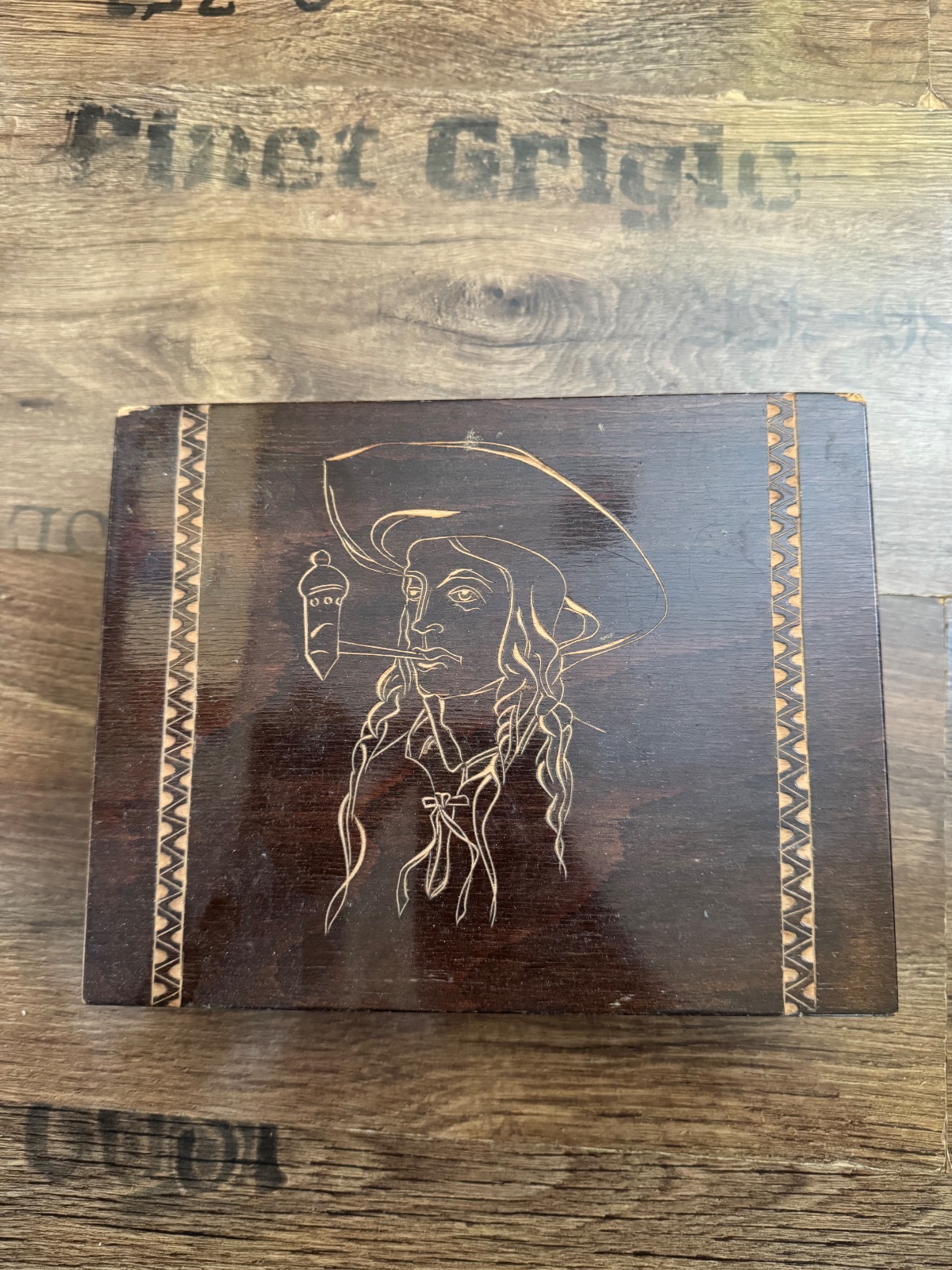 Ponúkam retro drevenú odkladaciu krabičku s motívom nejakého junáka - asi Jánošík. Bola používaná a má už nejaké tie drobné známky ako jemne poškodené zamykanie a chýba kľúčik. Môže slúžiť na odkladanie drobností, šperkov atď…Poštovné podľa taríf.