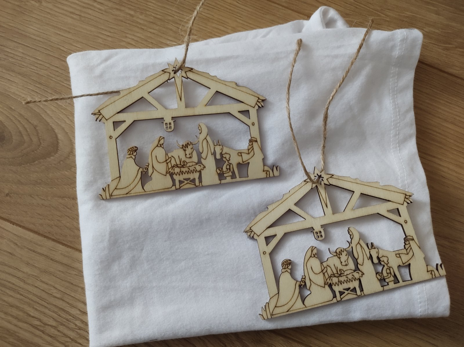 Nové ozdoby na zavesenie - drevený Betlehem, môže sa vyfarbiť fixou.