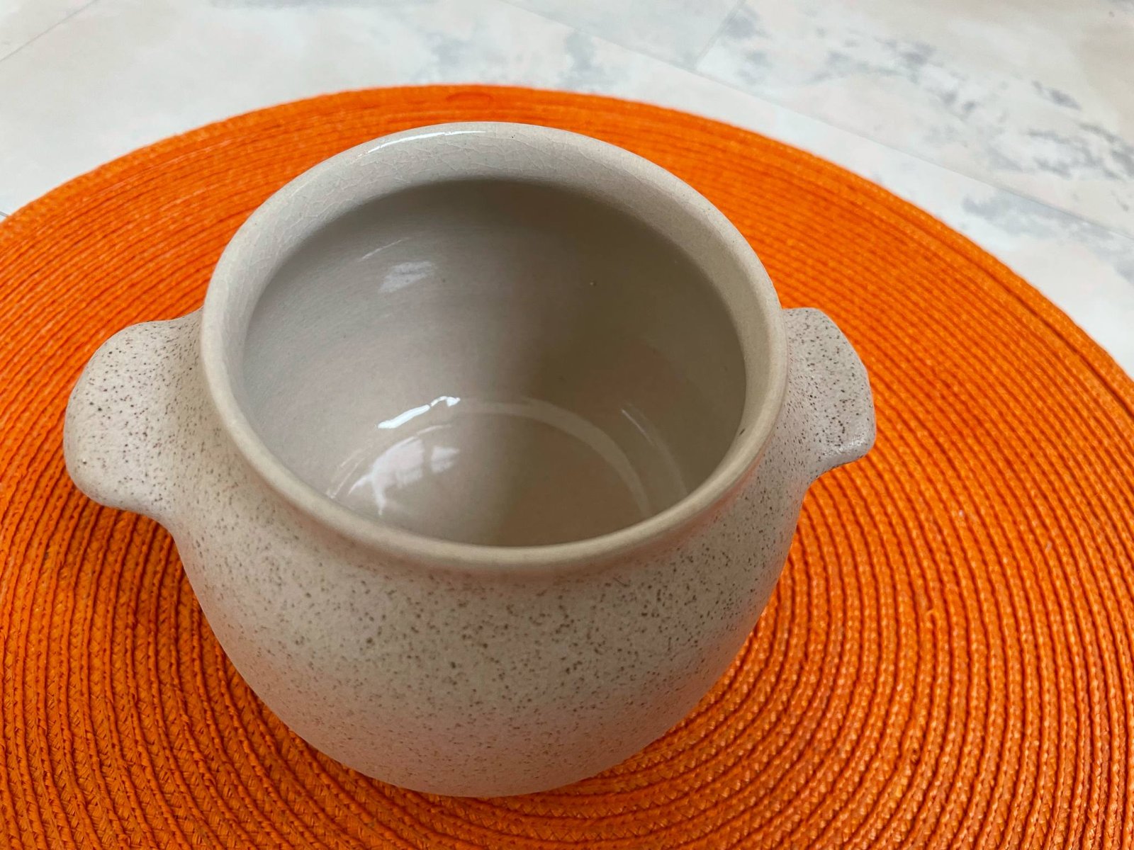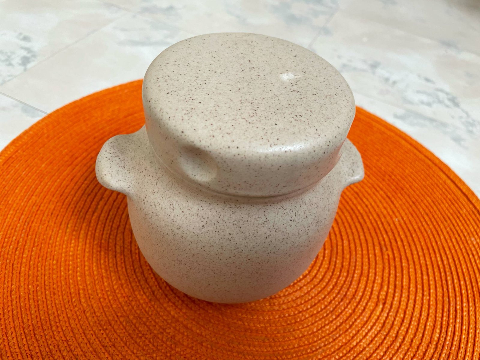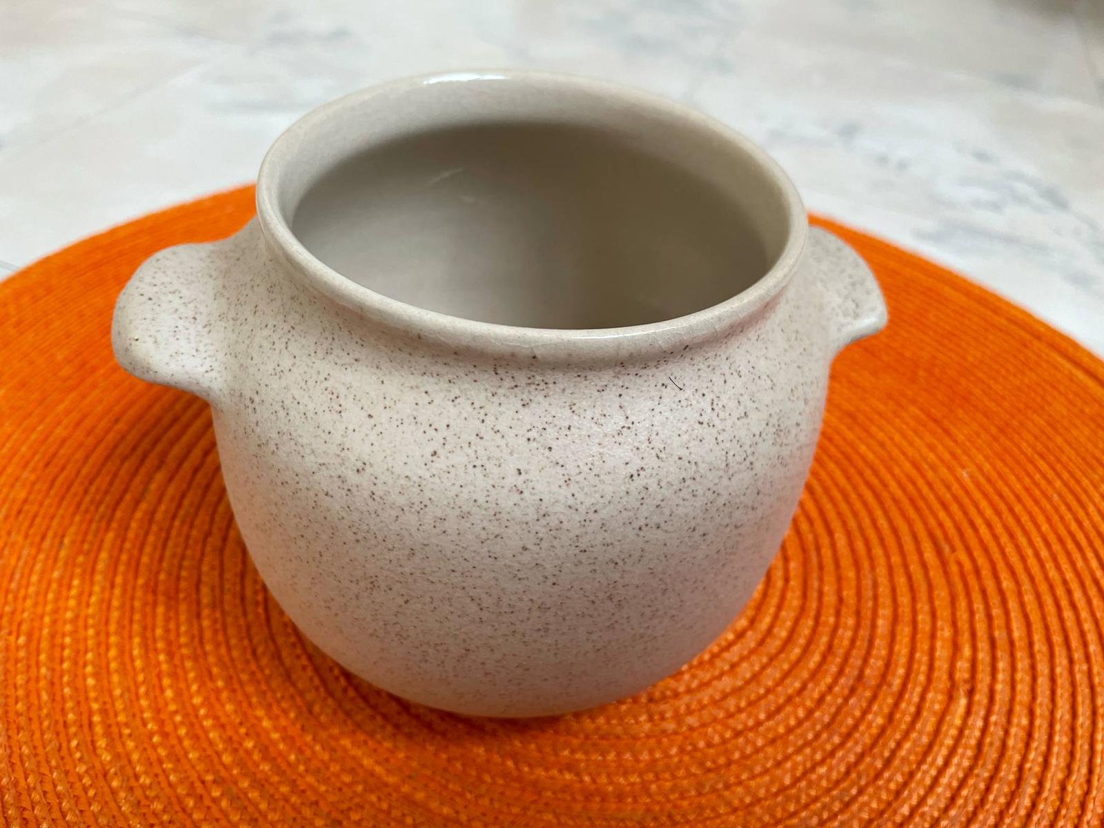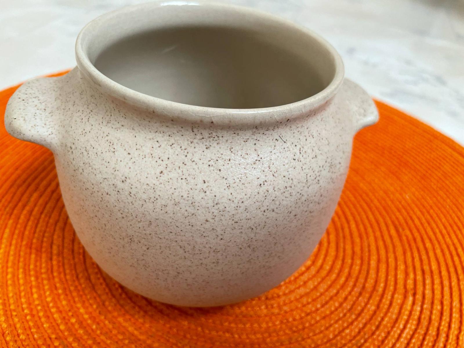 veľmi zaujímavý bytový doplnok,keramika,krásna imitácia kameniny,je to nádobka vhodná ako bonboniéra,váza,cukornička alebo na aranžovanie suchých kvetov - mnohostranné využitie,výška bez poklopu = 10 cm,šírka v najš.časti = 15 cm