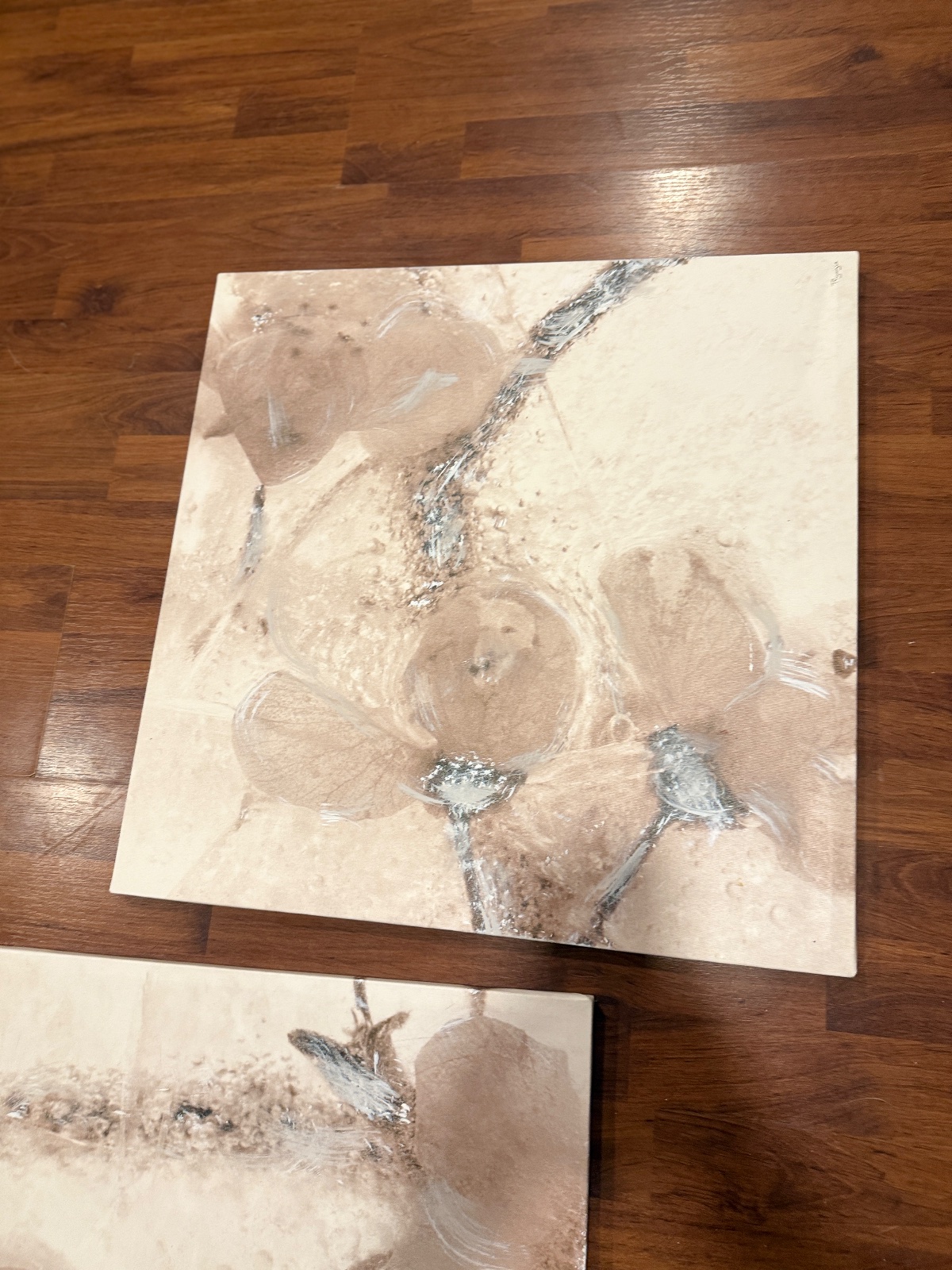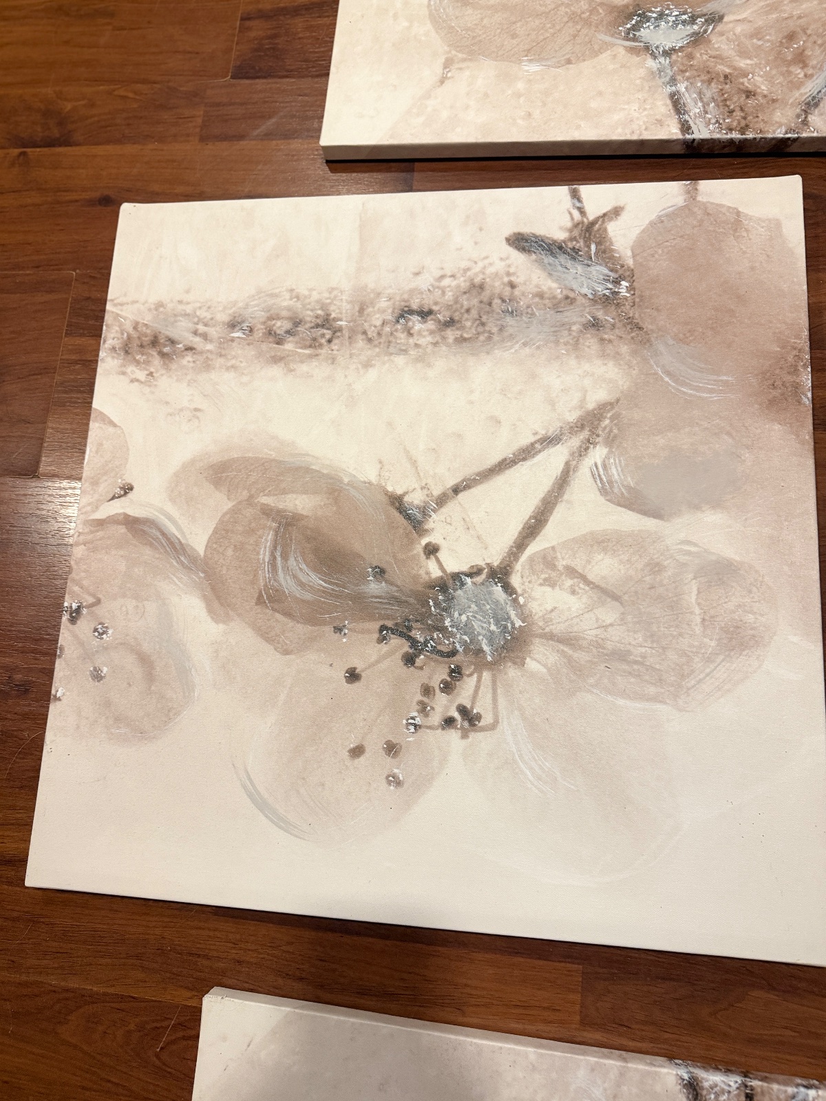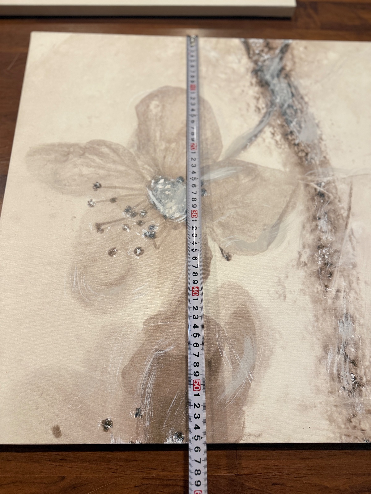 Predám 3 obrazy značky IKEA, ktoré tvoria spolu jeden harmonický celok (triptych). Jemný kvetinový motív v neutrálnych béžovo–krémových tónoch s plastickými detailmi (reliéf, kamienky), vhodné do obývačky, spálne alebo chodby.