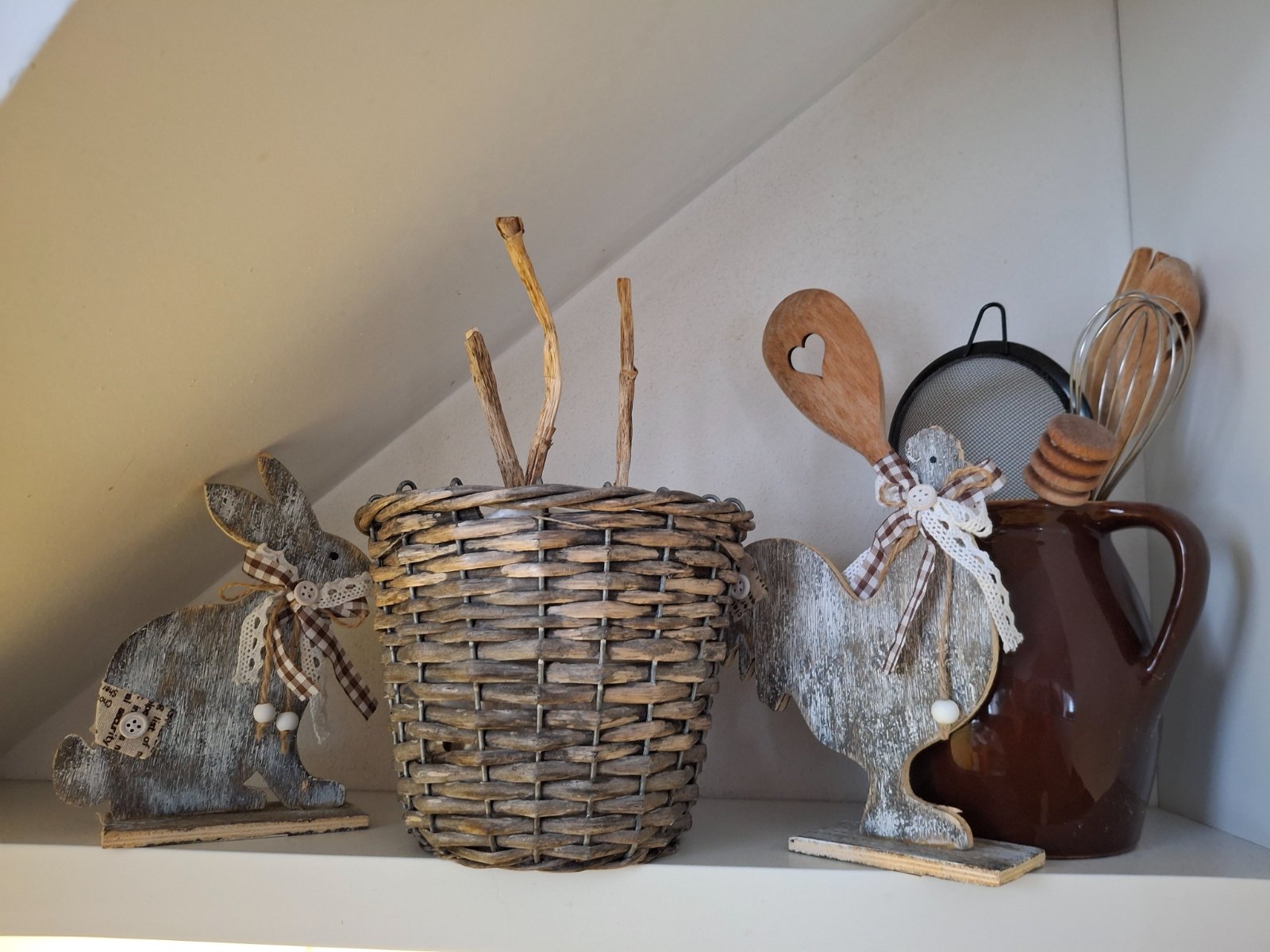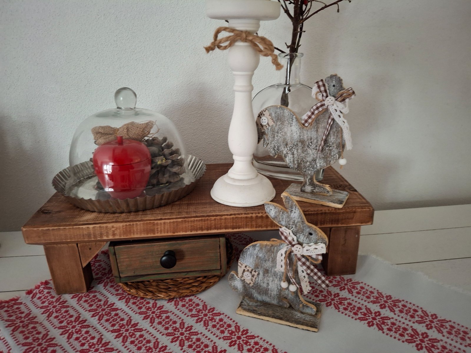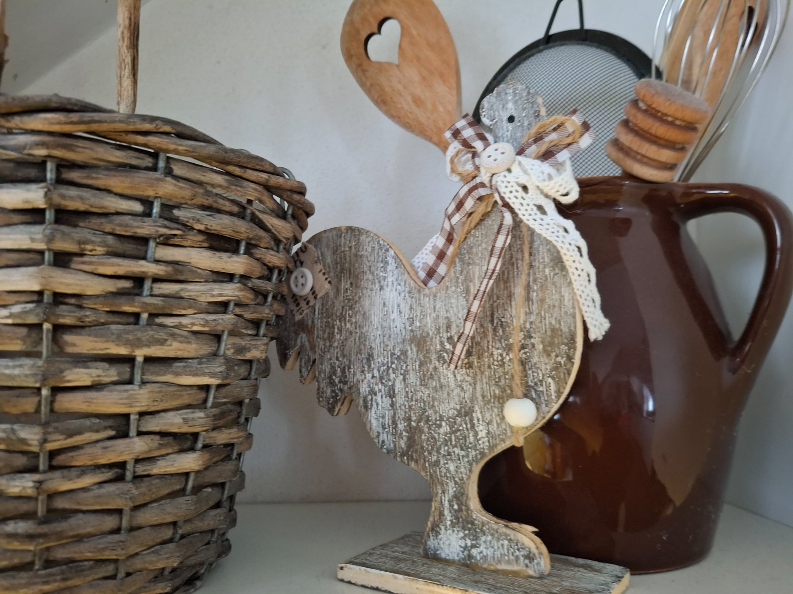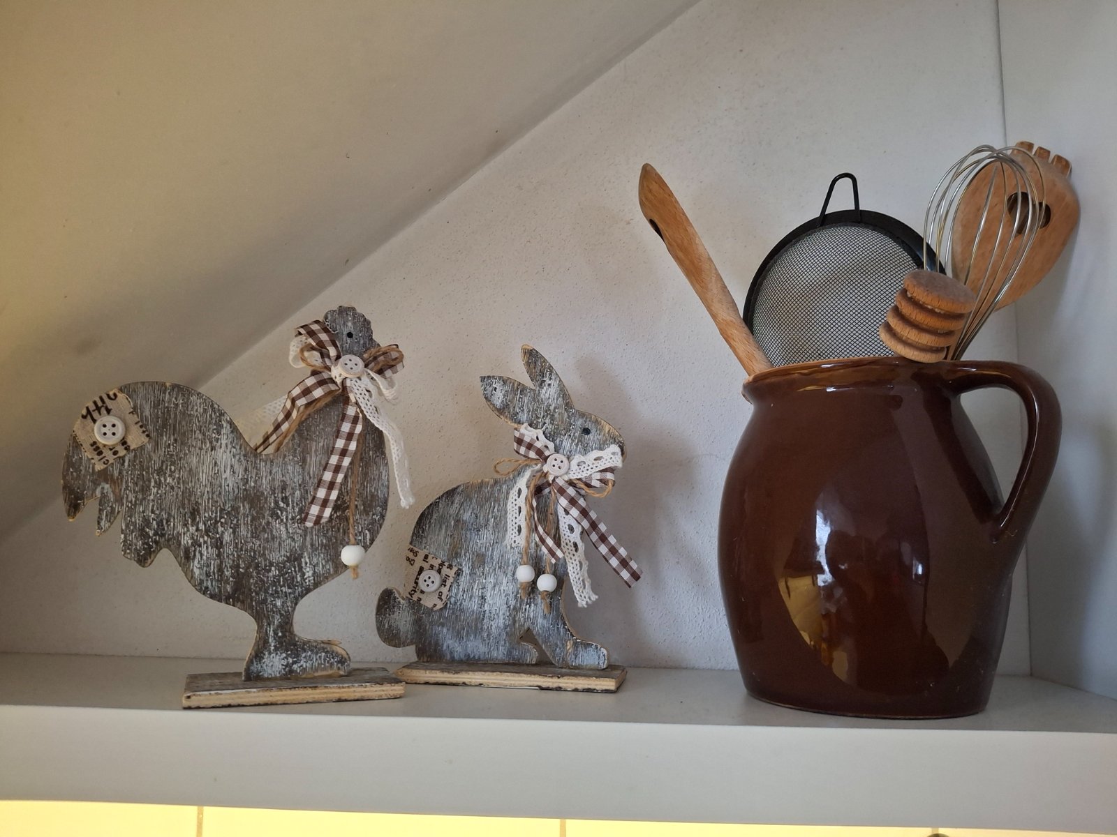 2ks drevene dekoracie sliepka a zajacik farba hneda, siva, biela. Cena spolu za 2ks. V pripade zaujmu mam 2ks sliepka a 2ks zajacik. Vyska 18 cm a 17 cm.