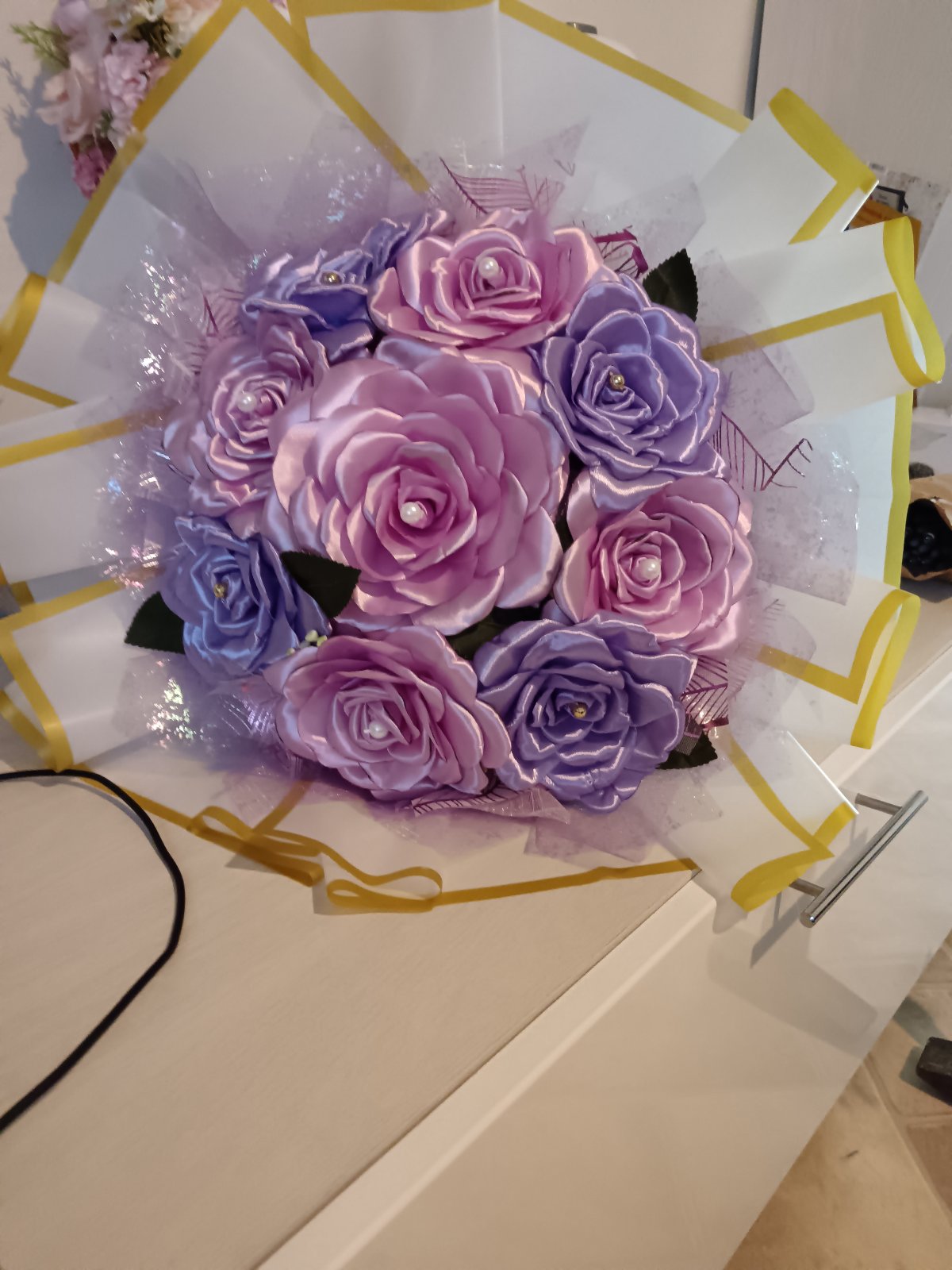 Kytica je vyrobená zo stuh. Vyrobím kyticu akejkoľvek farby.