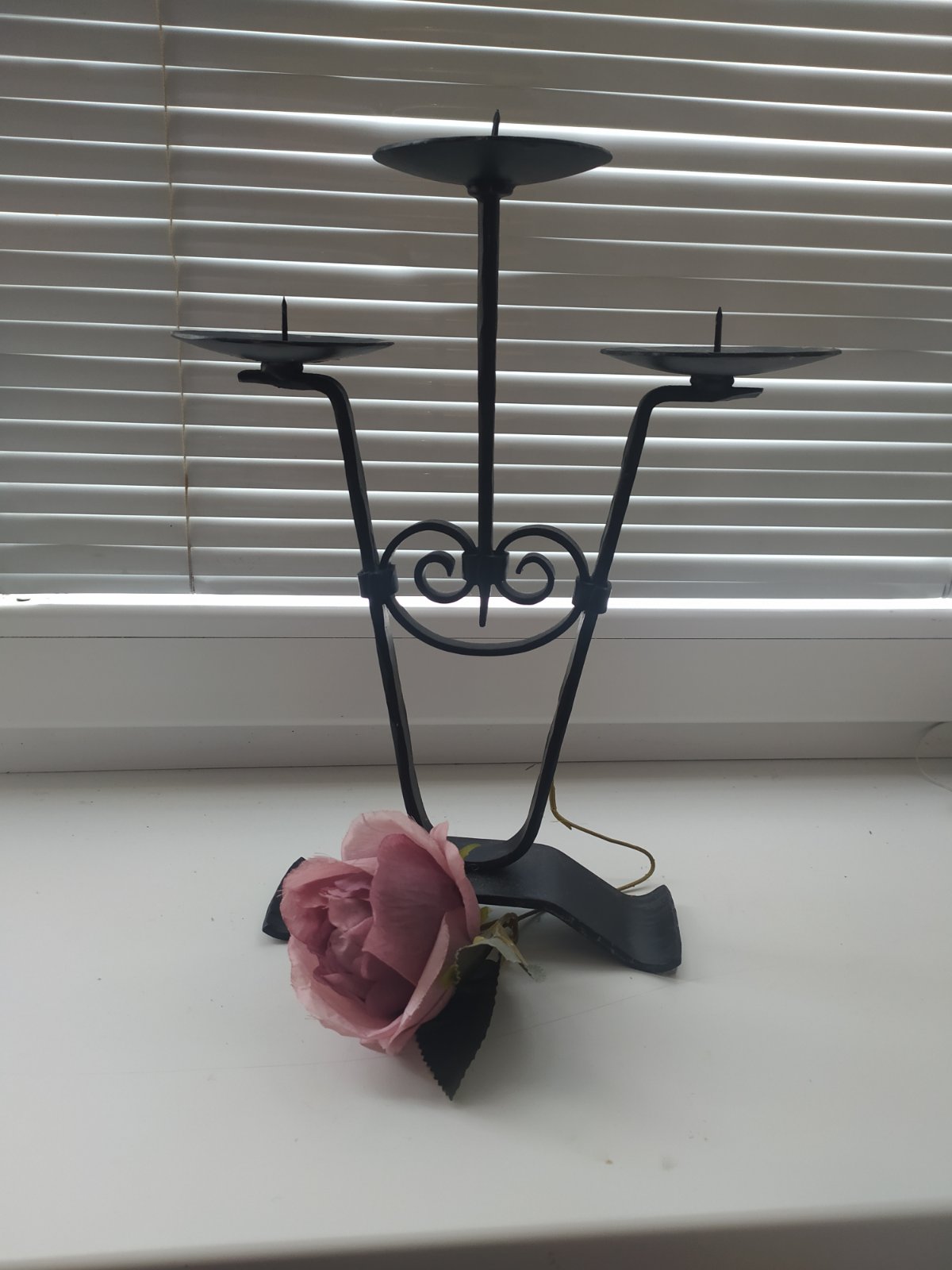 Kovový svietnik,na tri sviečky,bez poškodenia ,výška 26 cm,v