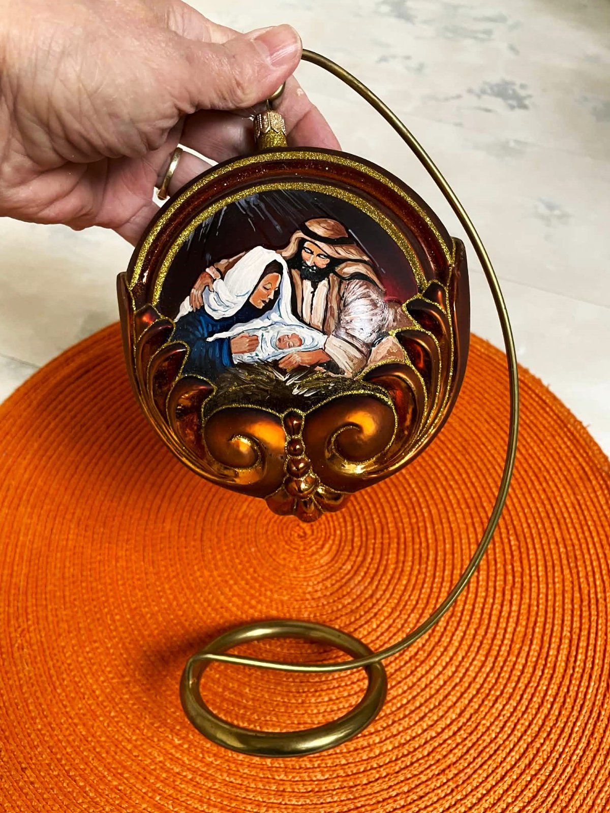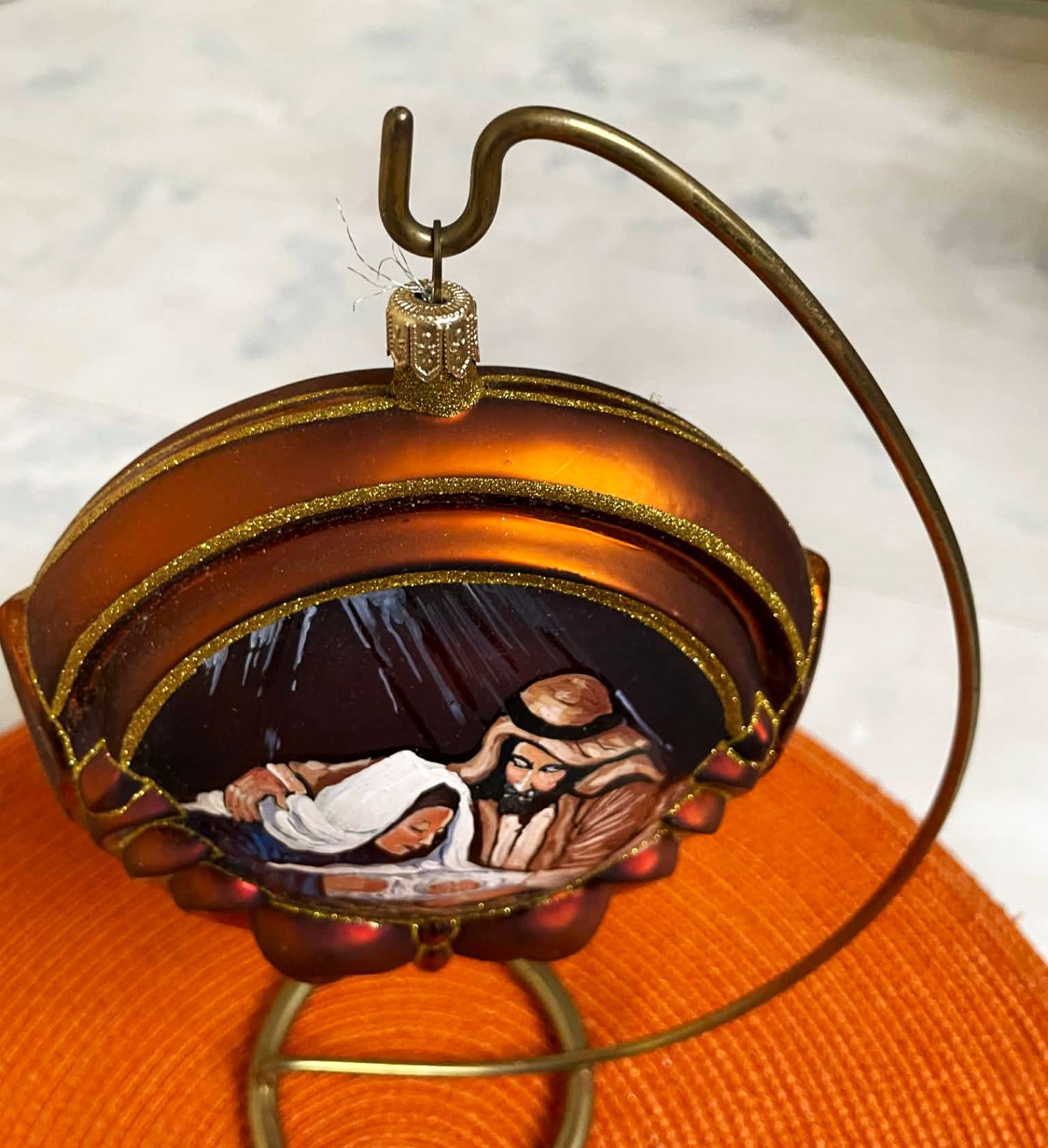 krásny a nevšedný Betlehem - na stojančeku,plochá plastická guľa ..