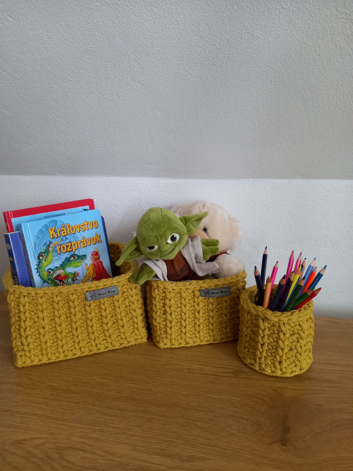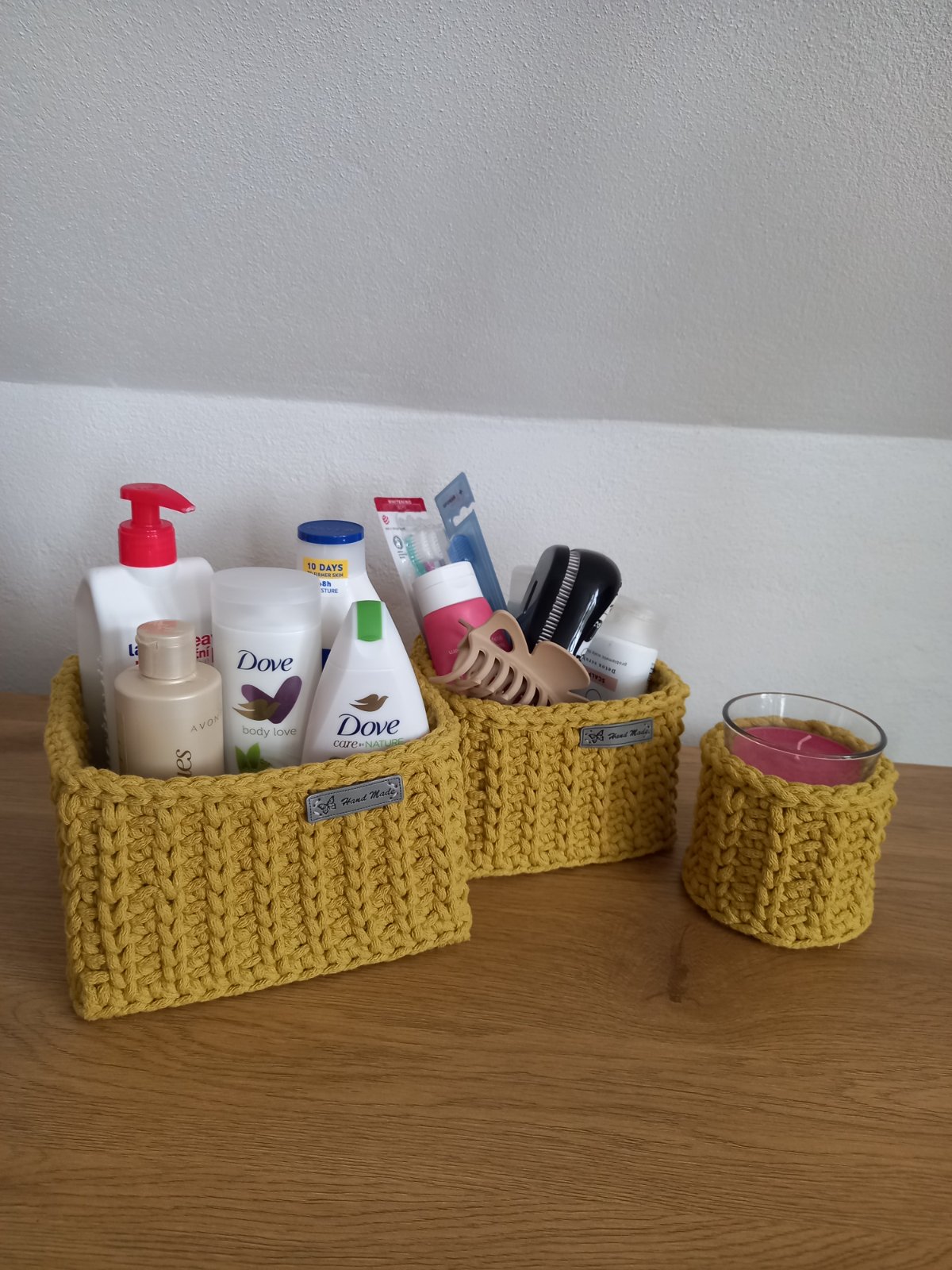 Predam sadu hackovanych kosikov vyrobenych z kvalitnych snur. Maju drevene dno 20x20cm, 16x16cm a 10cm. Kosiky vhodne na rozne drobnost do detskej izby, kupelne ci obyvacky. Cena 28eur. Vhodne aj ako darcek.
