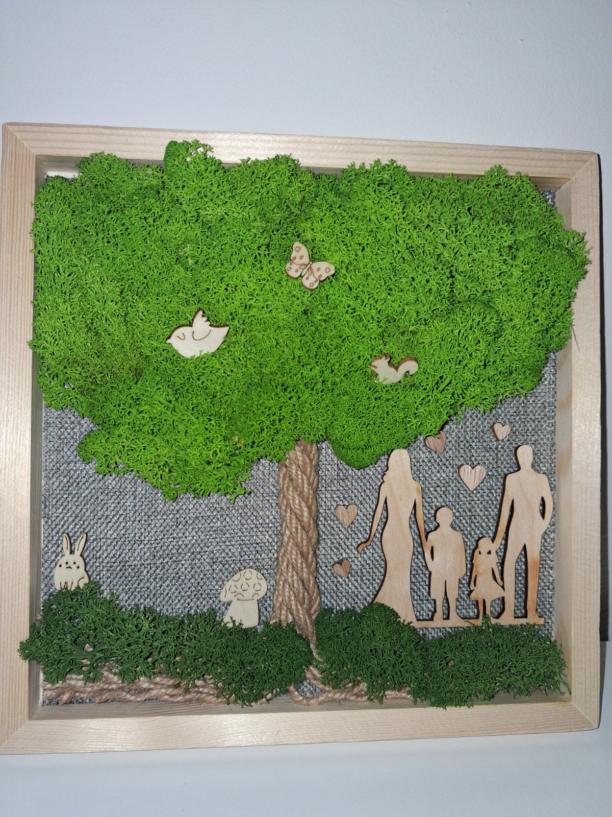 Obraz na drevenom rámiku so stabilizovaným machom 24x24cm, s háčikom na zavesenie