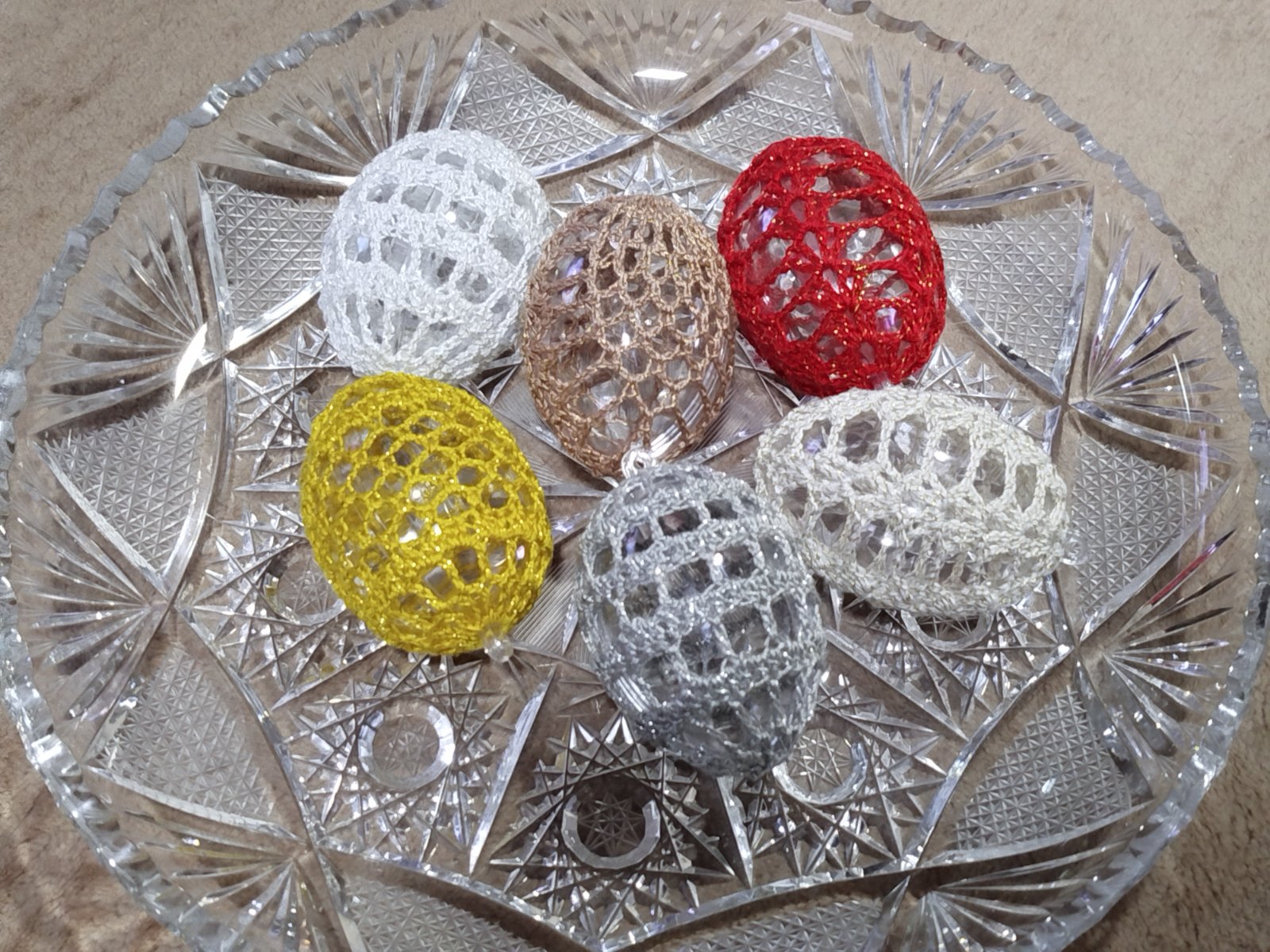 Háčkované na plastovom vajíčku.