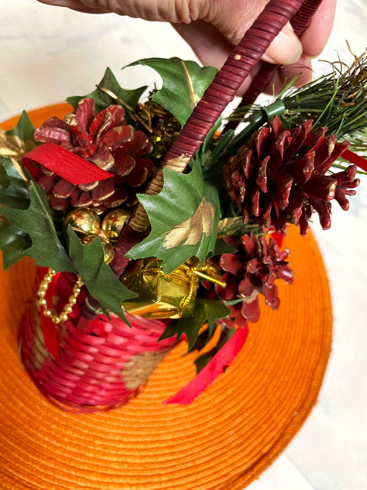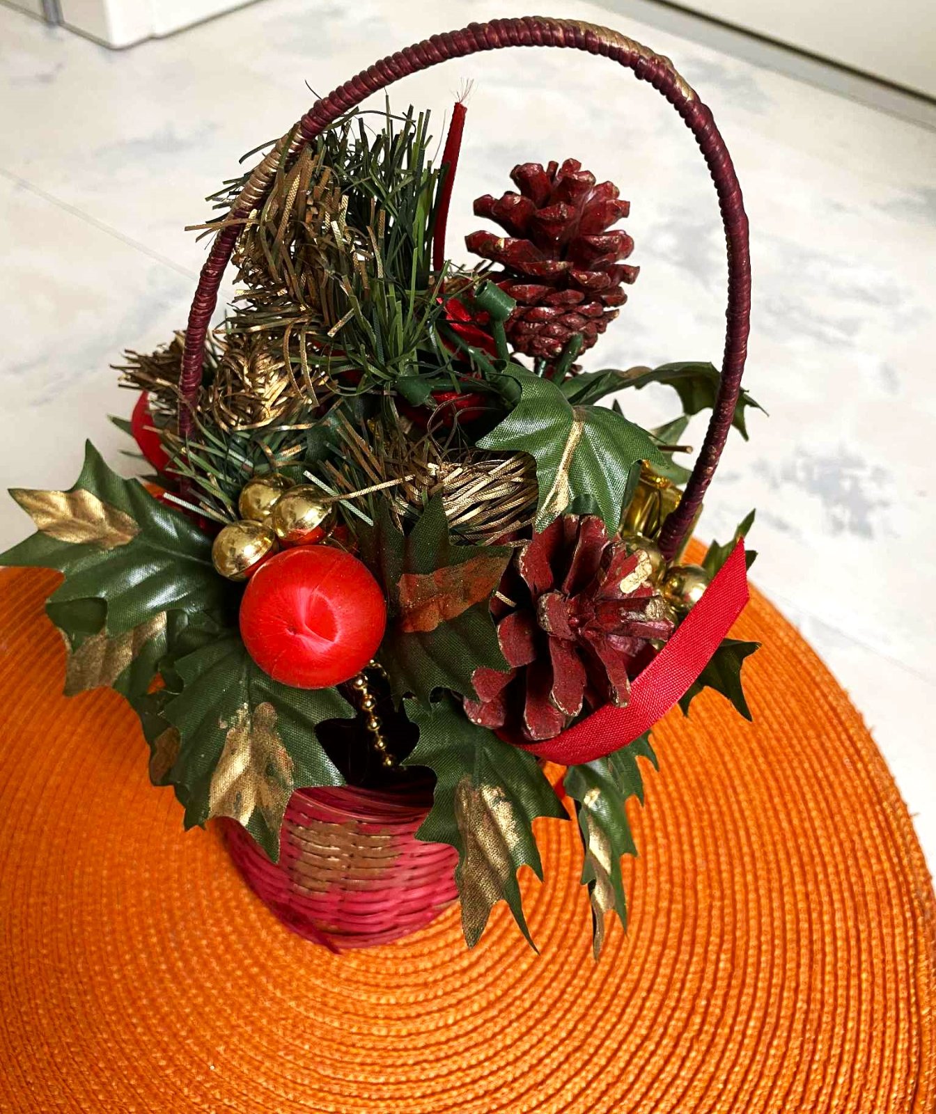 použitá na 1 Vianoce,výška 28 cm, šírka cca 14 cm, v prútenom košíčku,možnosť aj zavesiť