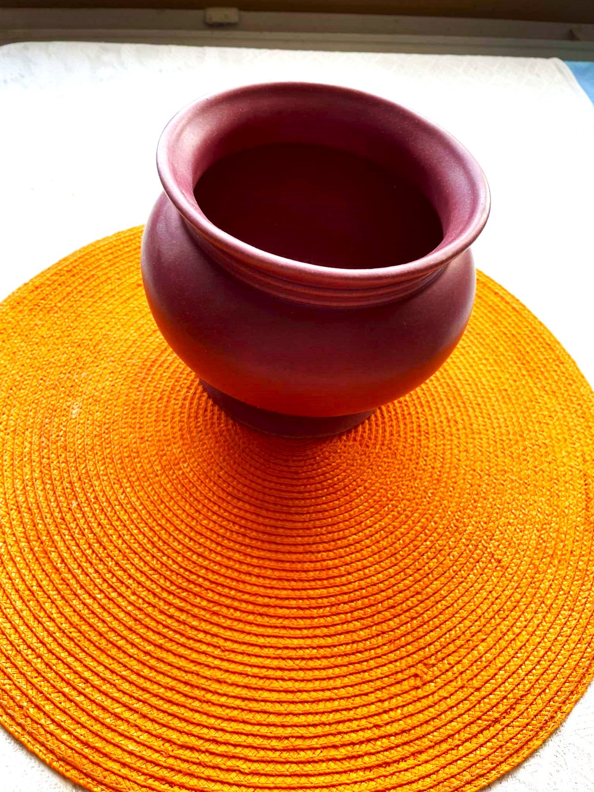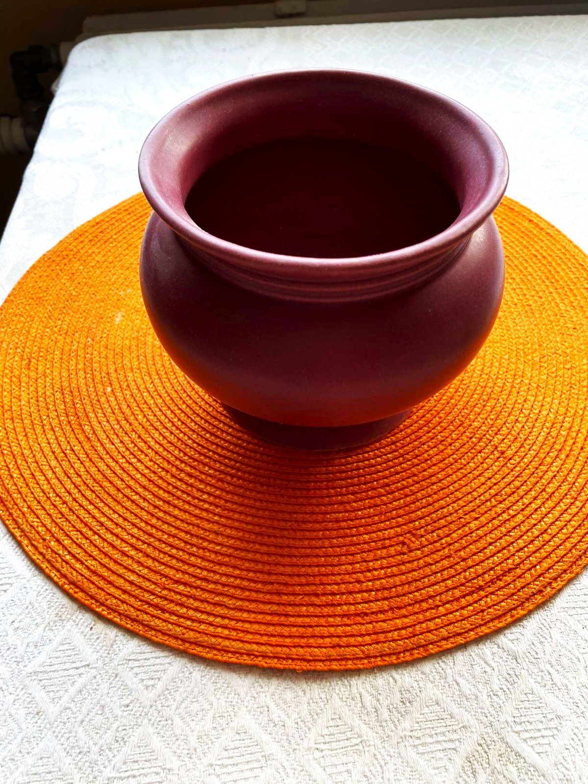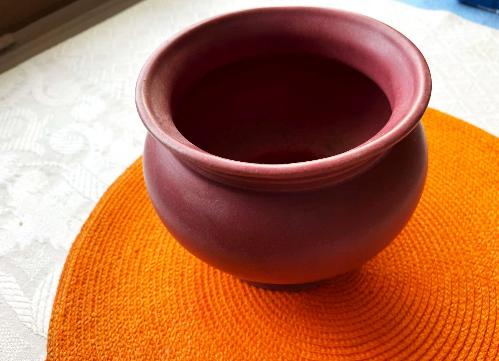 veľmi zaujímavá keramická váza,vhodná na sušené kvety,alebo ako črepník,netypický tvar,farba zastretá akoby vyblednutá fréziová ružovobordová,výška = 14 cm,priemer vrch = 14 cm, šírka v najširšej časti = 18 cm