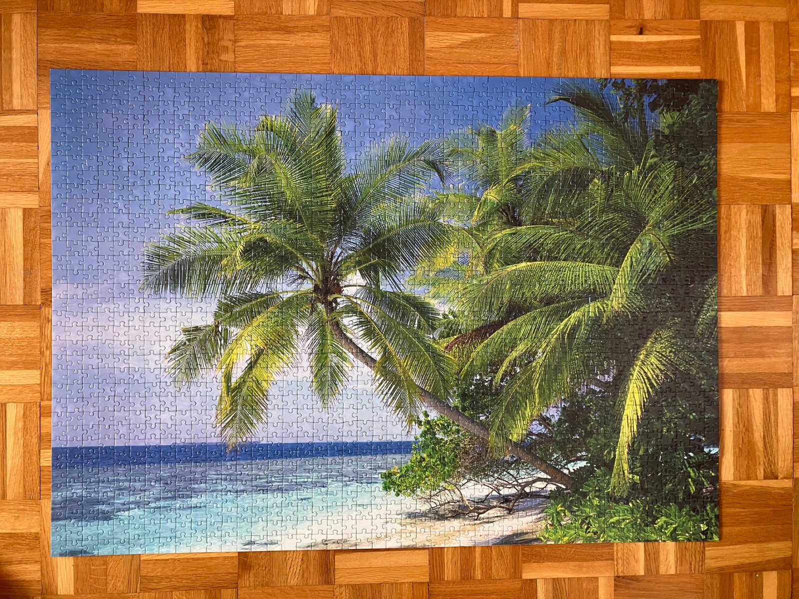 Zlepené puzzle, nevystavene, obraz bol zabalený a odložený.