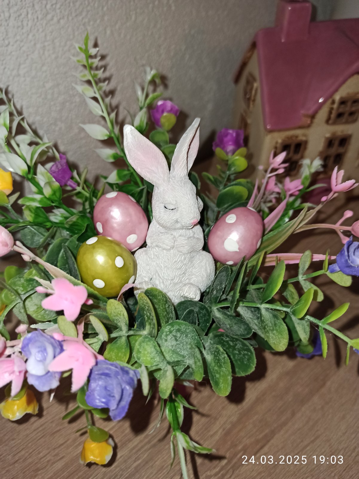 Pestrofarebná dekorácia so spiacim zajkom.Oživí každú poličku,komodu alebo stôl.Je naozaj roztomilá, takže určite vyčarí úsmev na každej tvári ☺️