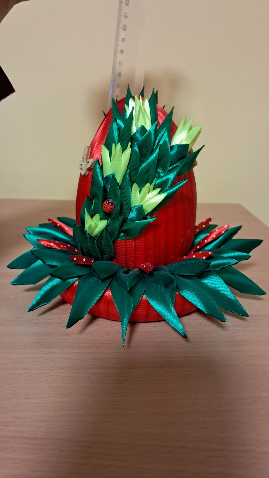 Velkonocne vajicko zdobene stuhou,vyska 15cm