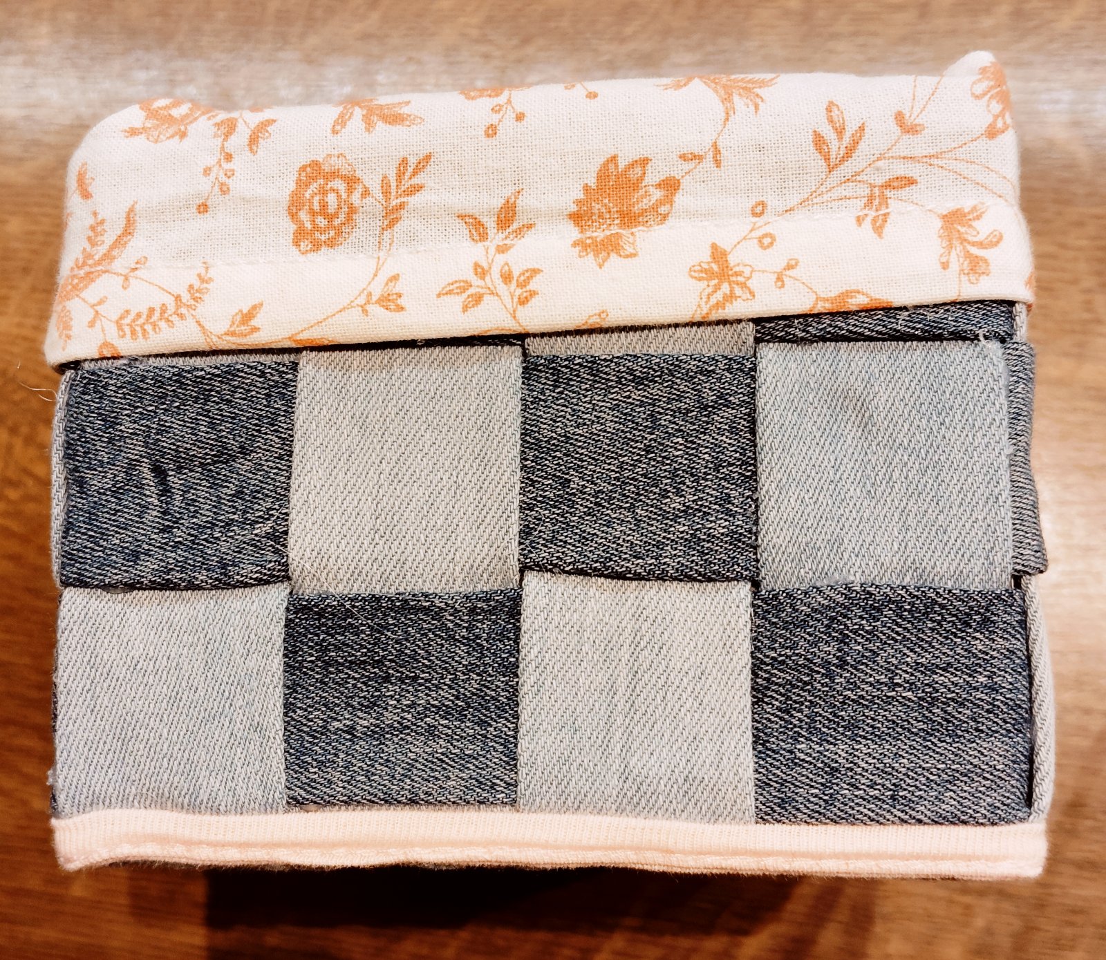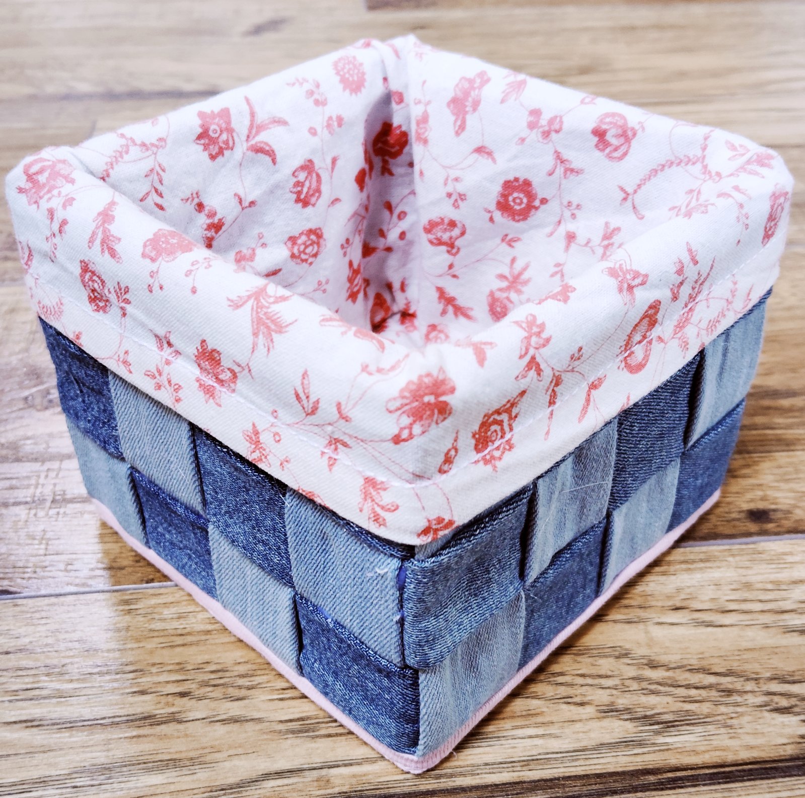 Ponúkam ručne háčkovaný košík s dreveným dnom.vyrobím vo farbe podľa vlastného výberu a vkusu. Rozmery 20x20x11 cm.