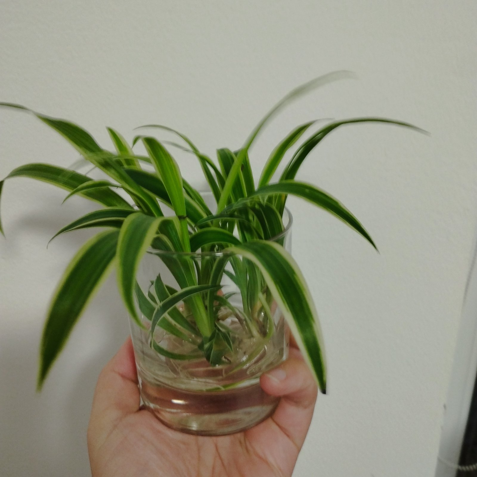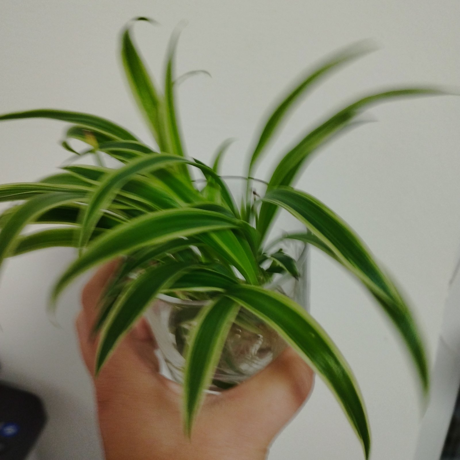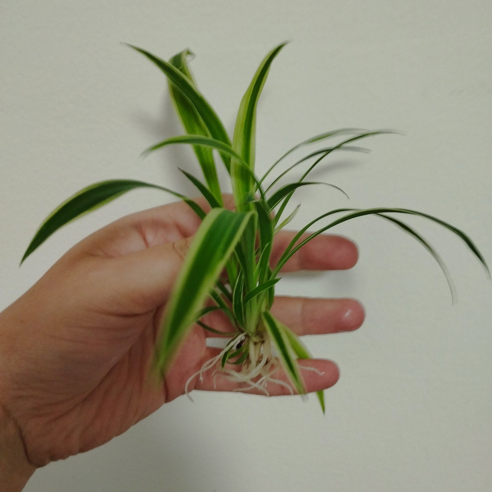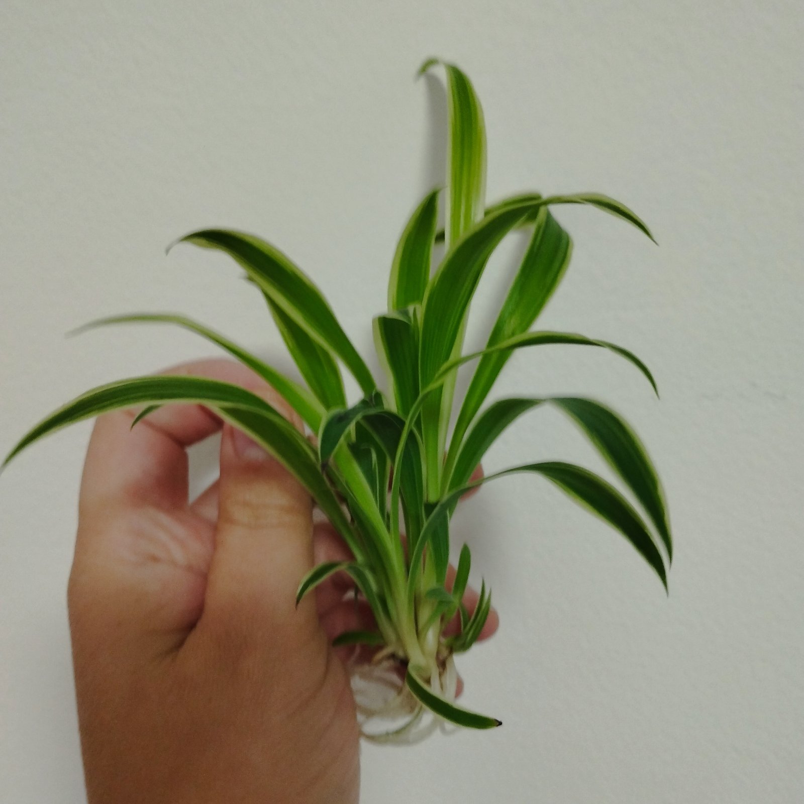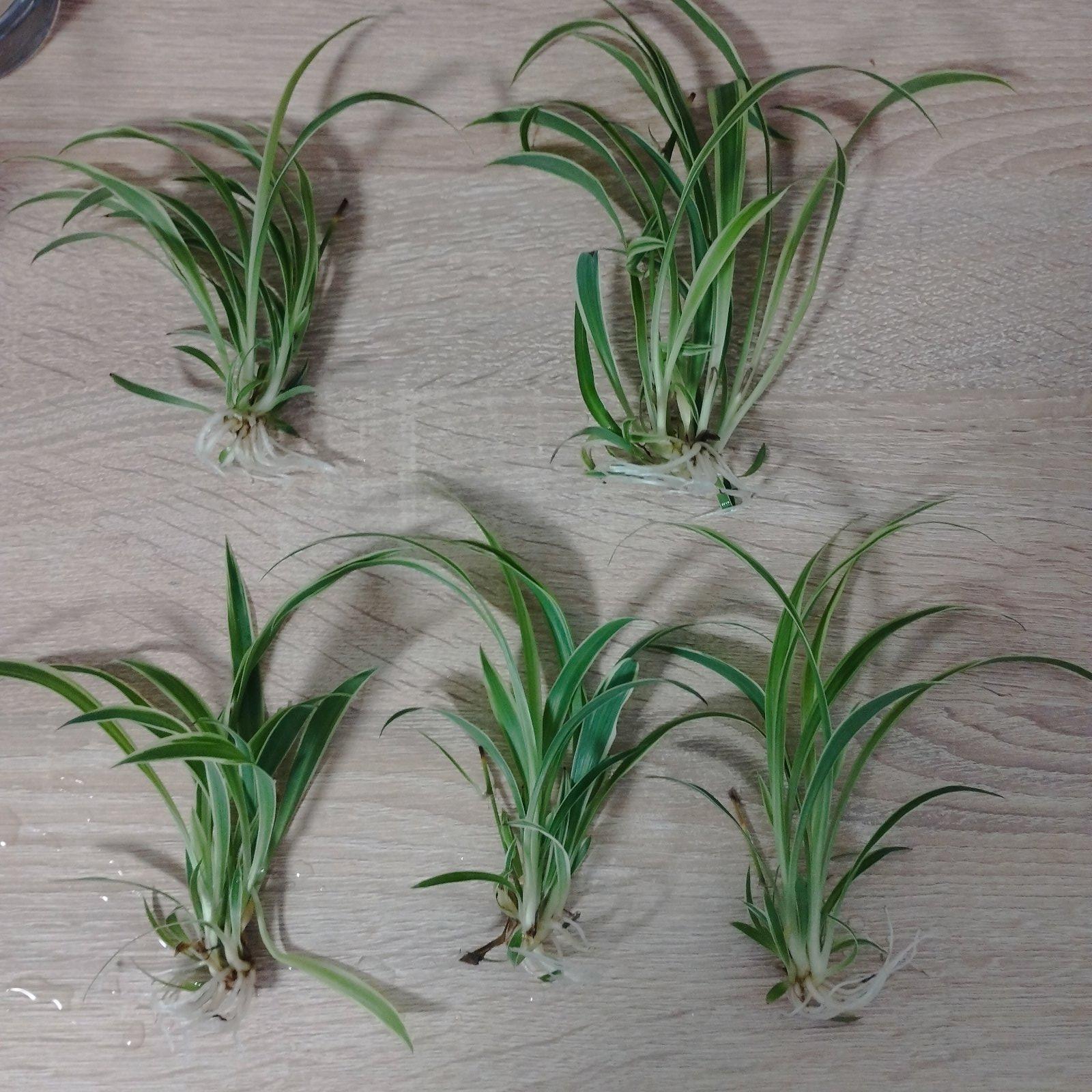 Mladé rastlinky s korienkami, izbová rastlina zelenec s bielou farbou po okrajoch.