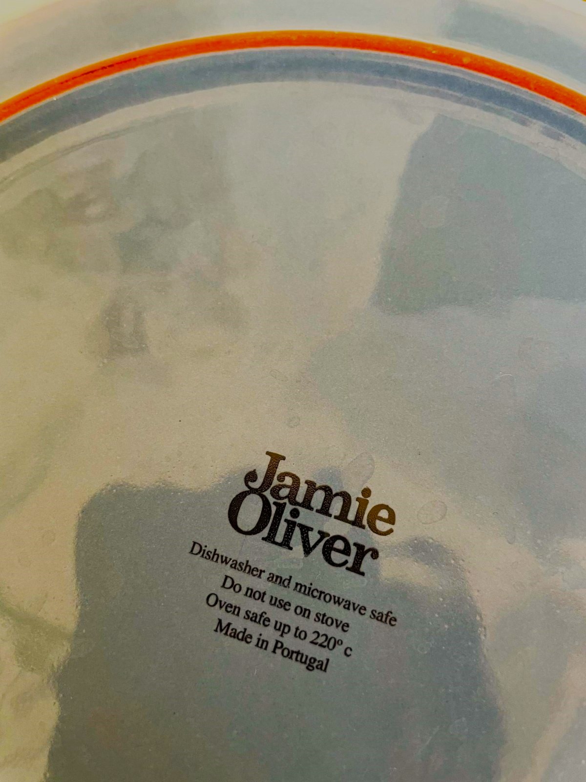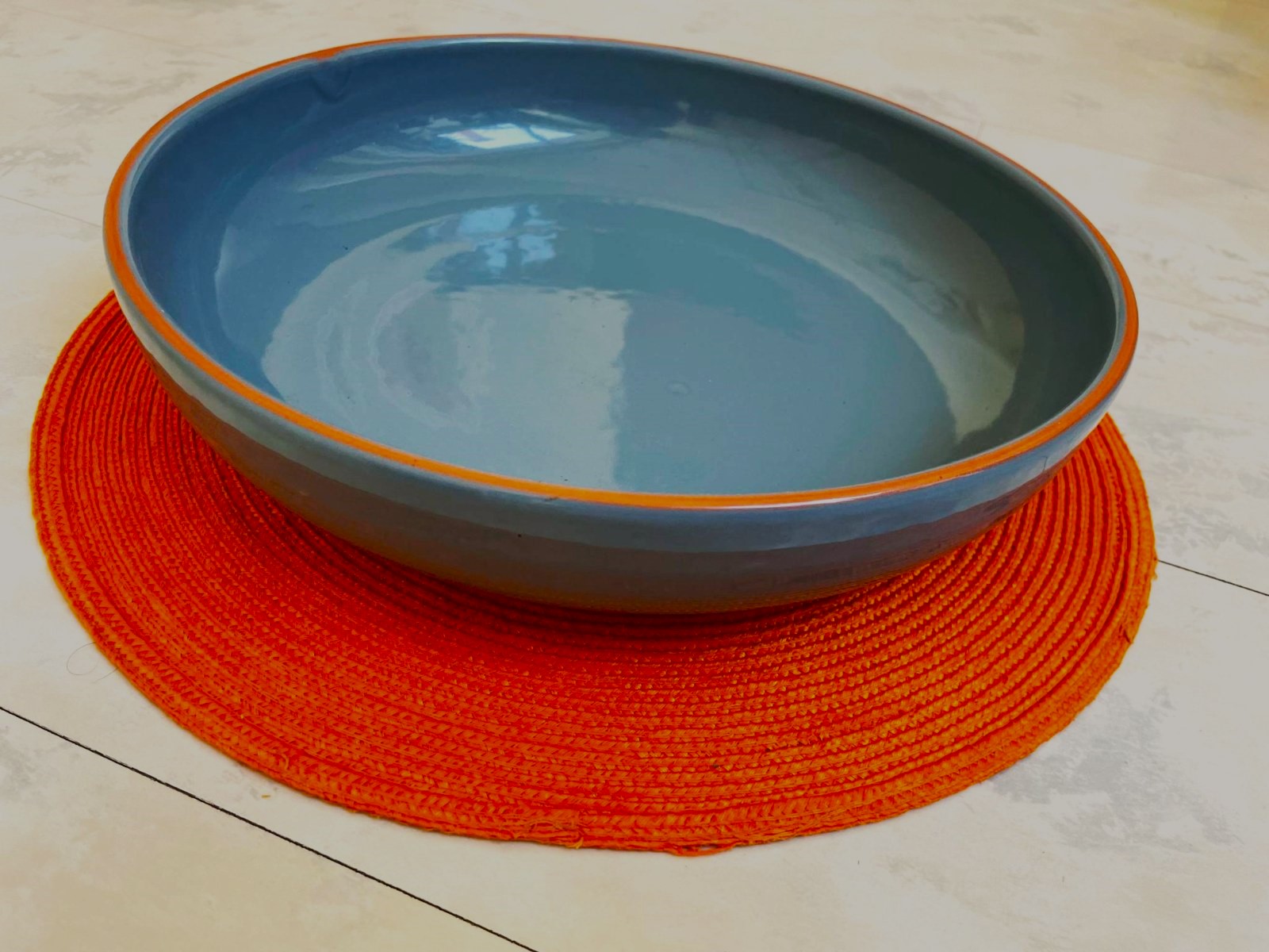 krásna veľká dizajnovka - keramická glazúrovaná misa na ovocie, alebo na iné,známej značky JAMIE OLIVER,dovezená z Portugalska,farba oceľovo modro sivá - ako sú tmavšie fotky,priemer = 30,5 cm,olemované terakotovo - tehlovým prúžkom