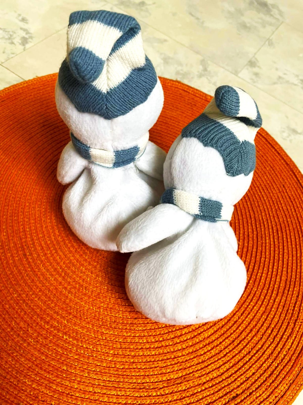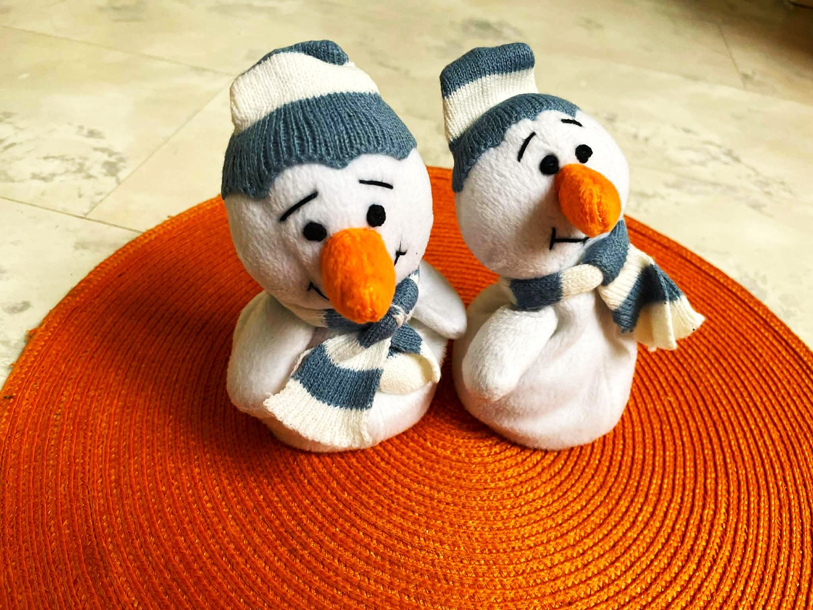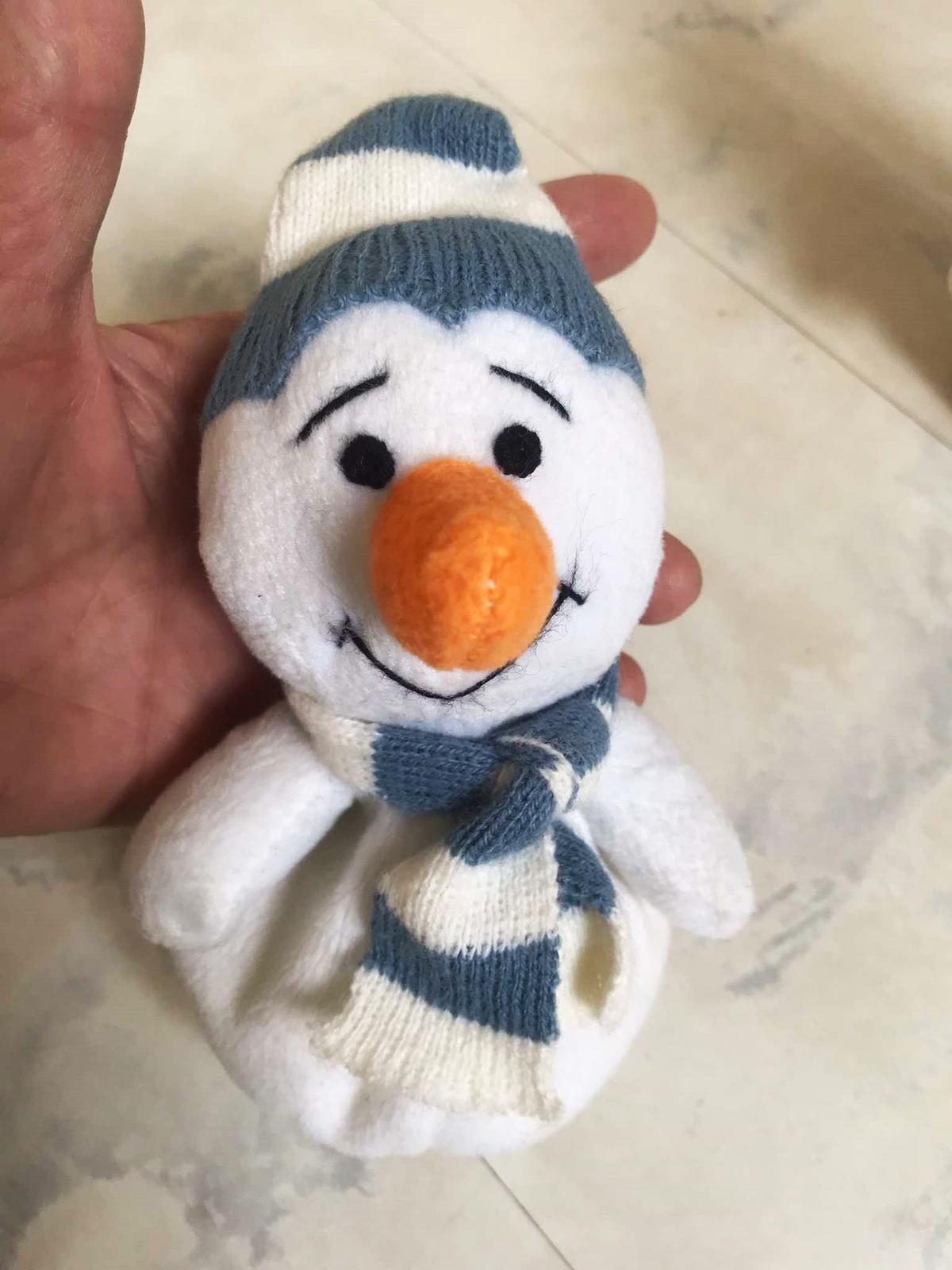 snehuliak - vyplnený guličkami, výška = 15 cm,mäkký a tvarovateľný,použité na Vianoce,top stav,možnosť oprať v práčke