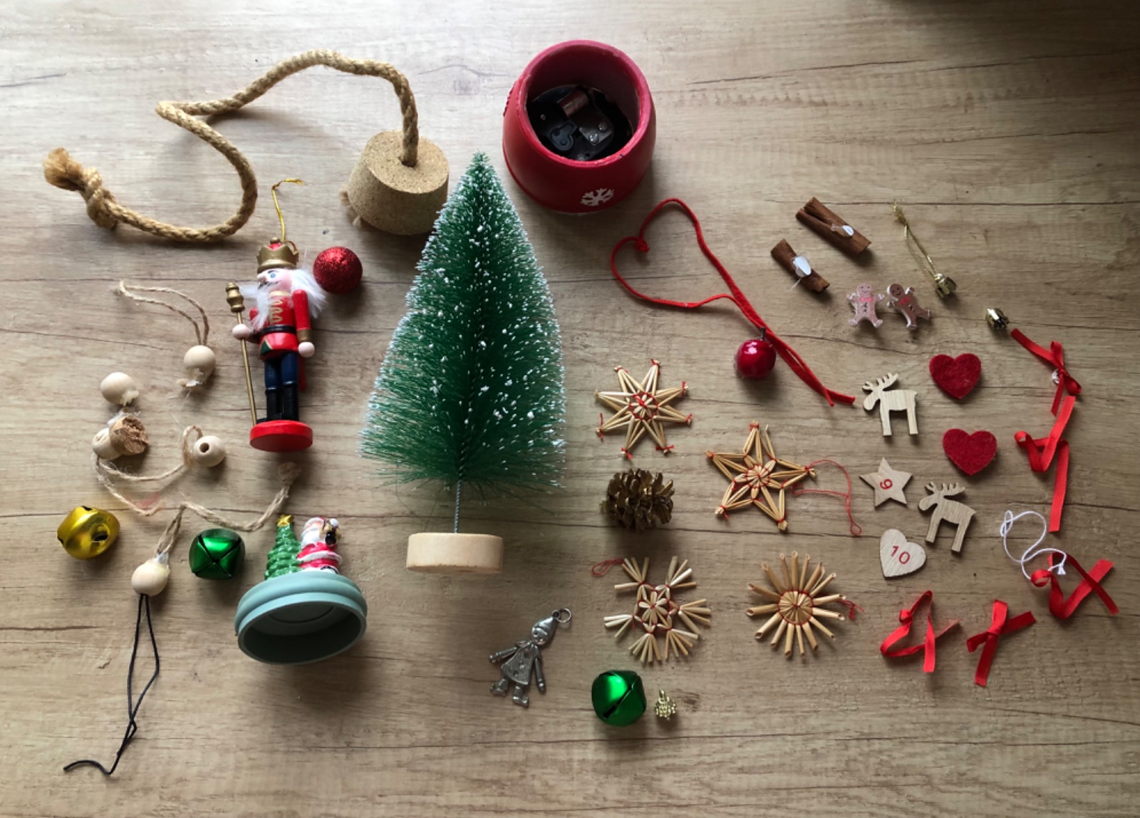 Balík vianočných dekorácií a ozdôb, luskáčik
