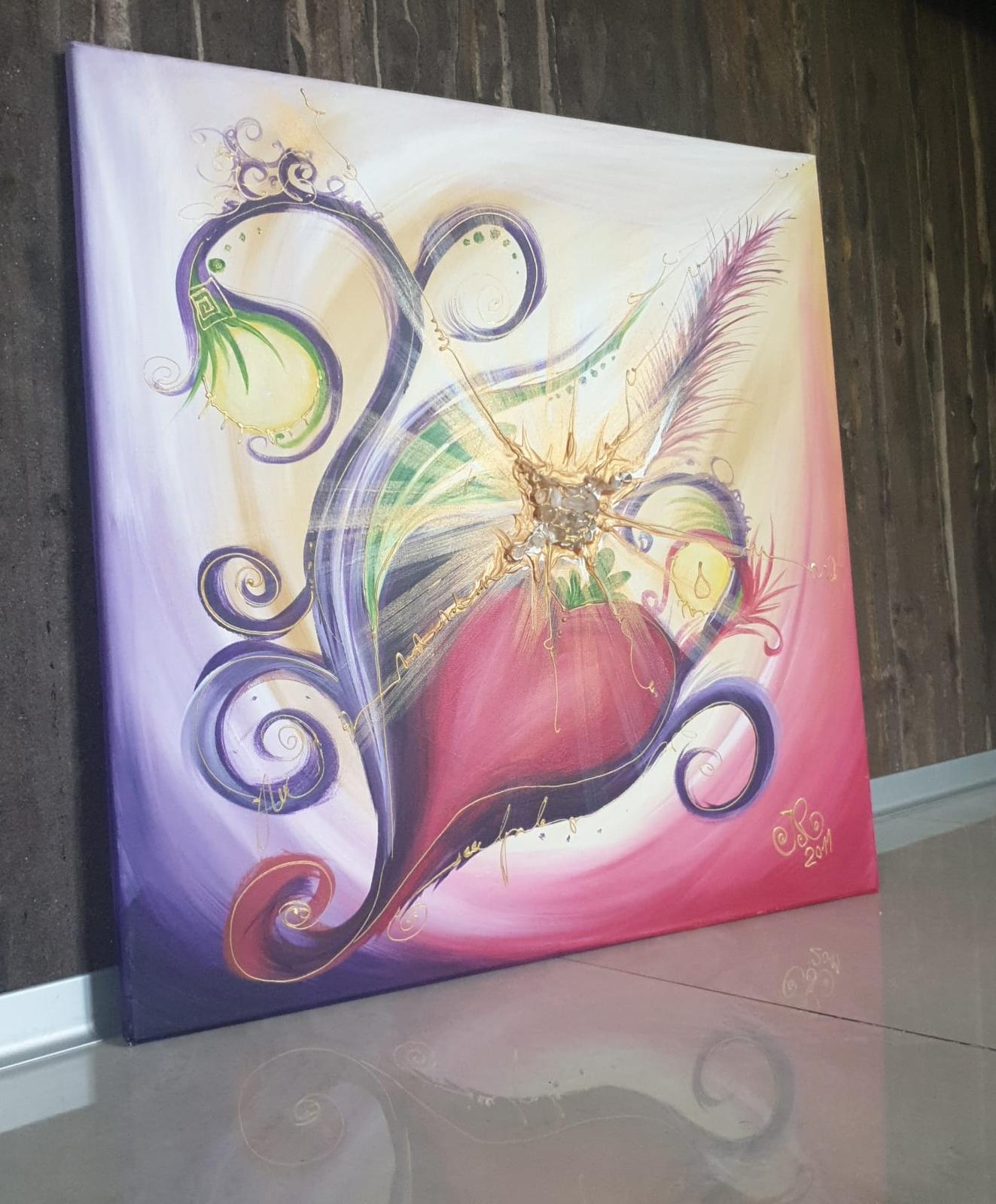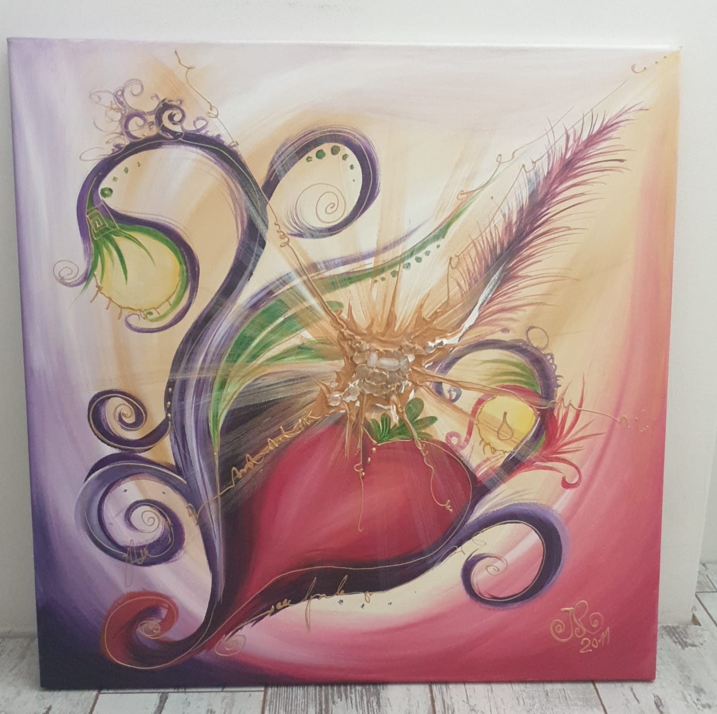 Maľba akrylovými farbami na plátno o veľkosti 60x60cm.