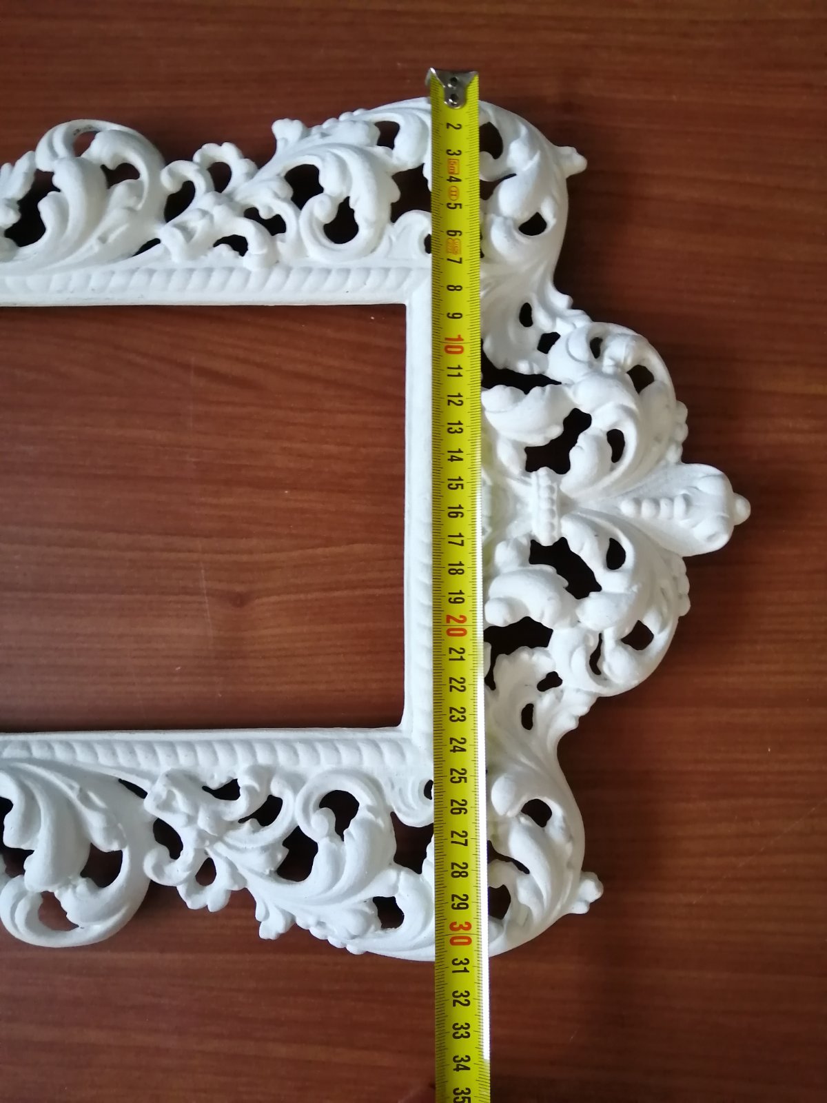 Celkové rozmery: 55x37cm. Rozmery pre fotky sú 10x15cm. Materiál: kov. Farba: biela