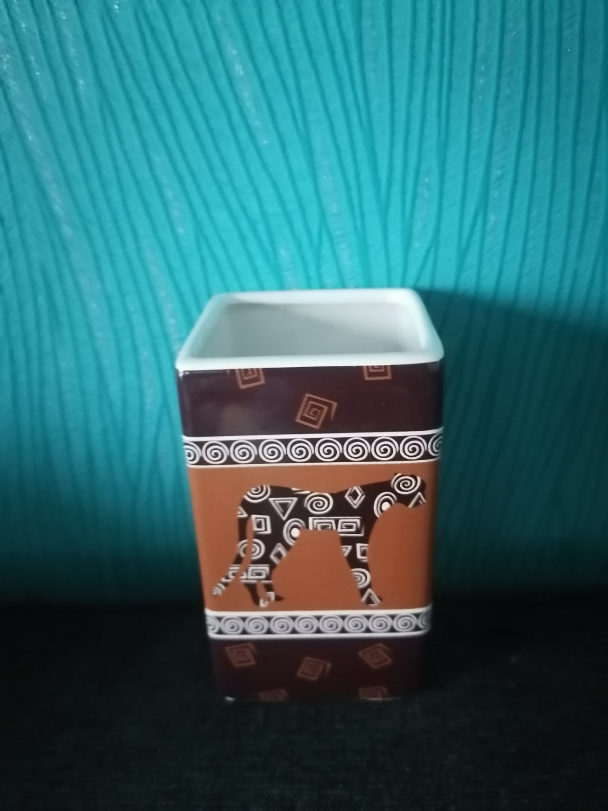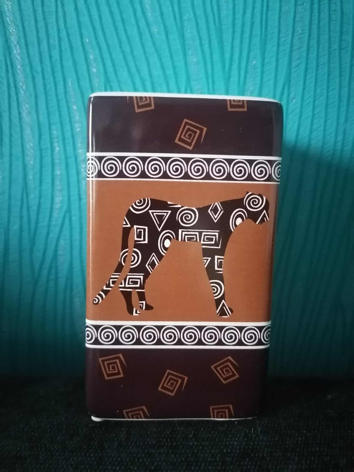 Predám porcelánovú vázu, vhodnú aj ako stojan na perá, štetce, varechy, ceruzky... Čokoľvek. Bezvadný stav. Africký motív geparda. Rozmery 6,8x6,8 cm a výška 11,50 cm. Cena 6 Eur plus poštovné alebo osobný odber v BA.